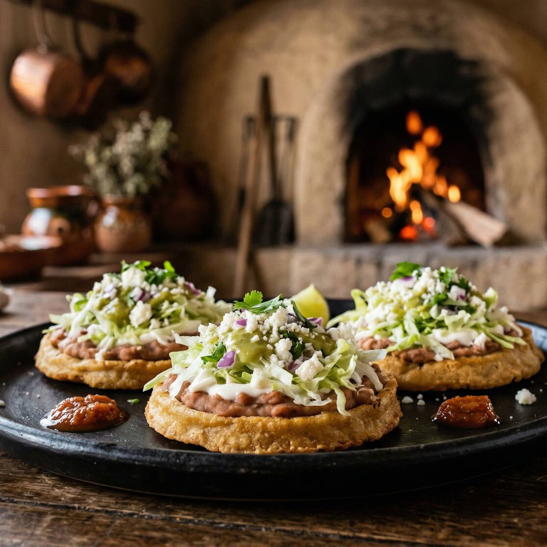 Pequeños sopes de maíz: tortillitas gruesas con borde, tamaño bocado, para el desayuno.