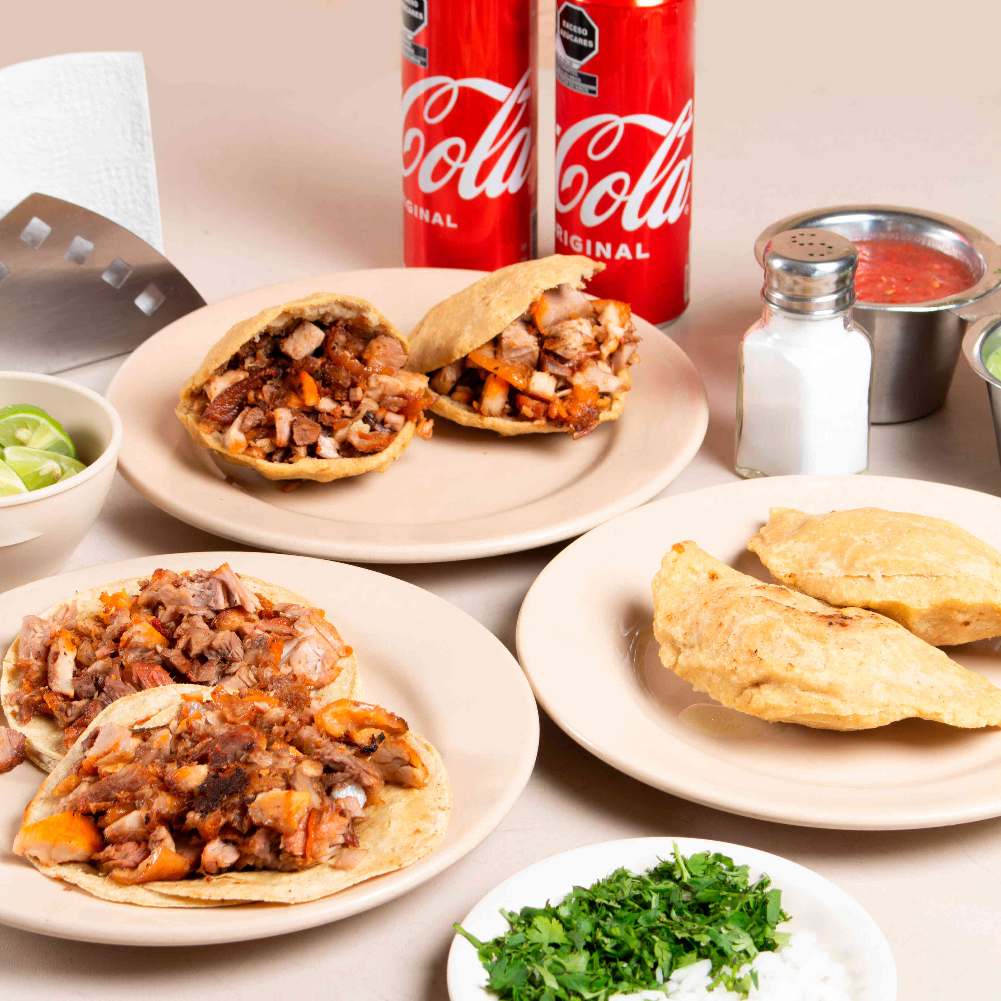 2 Quesadillas de Queso + 2 Refresco + 2 Gorditas de Chicharrón con Carnitas + 2 Tacos de Carnitas