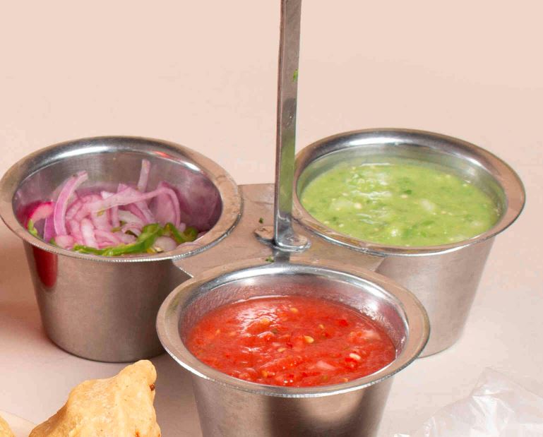 Incluye proporcional de salsa a elegir, proporcional de (cebolla y cilantro o cebolla morada) y proporcional de limones.