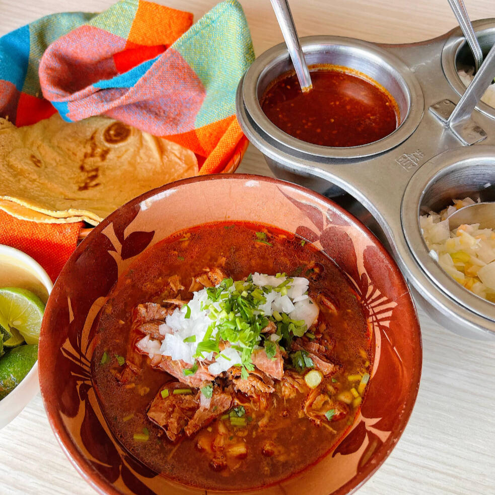 Incluye verdura, limón, tortillas, 1 1/2 litro de consomé, salsa, adobo y rajas.