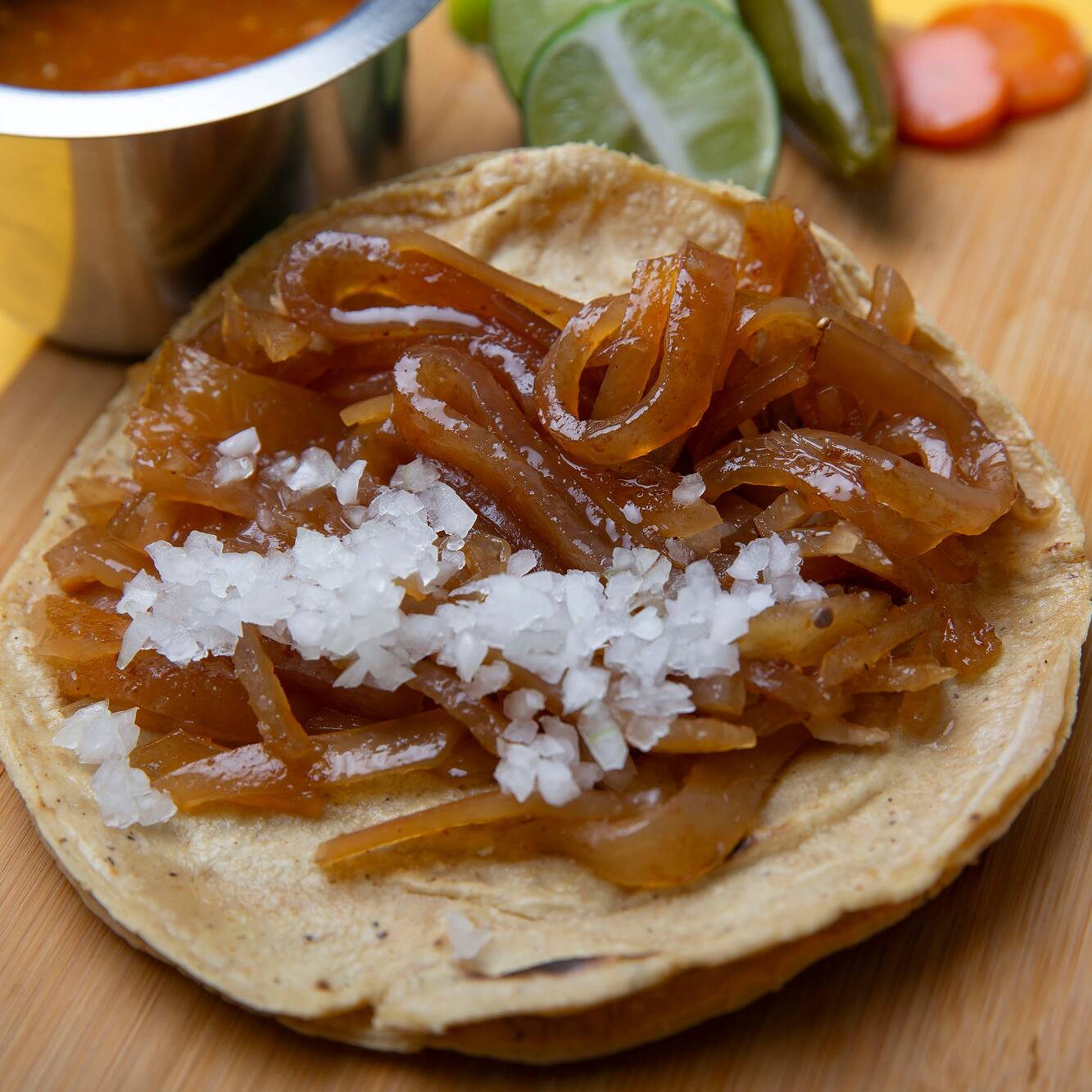 Taco con 110 gramos de barriga en trozo y 2 tortillas.