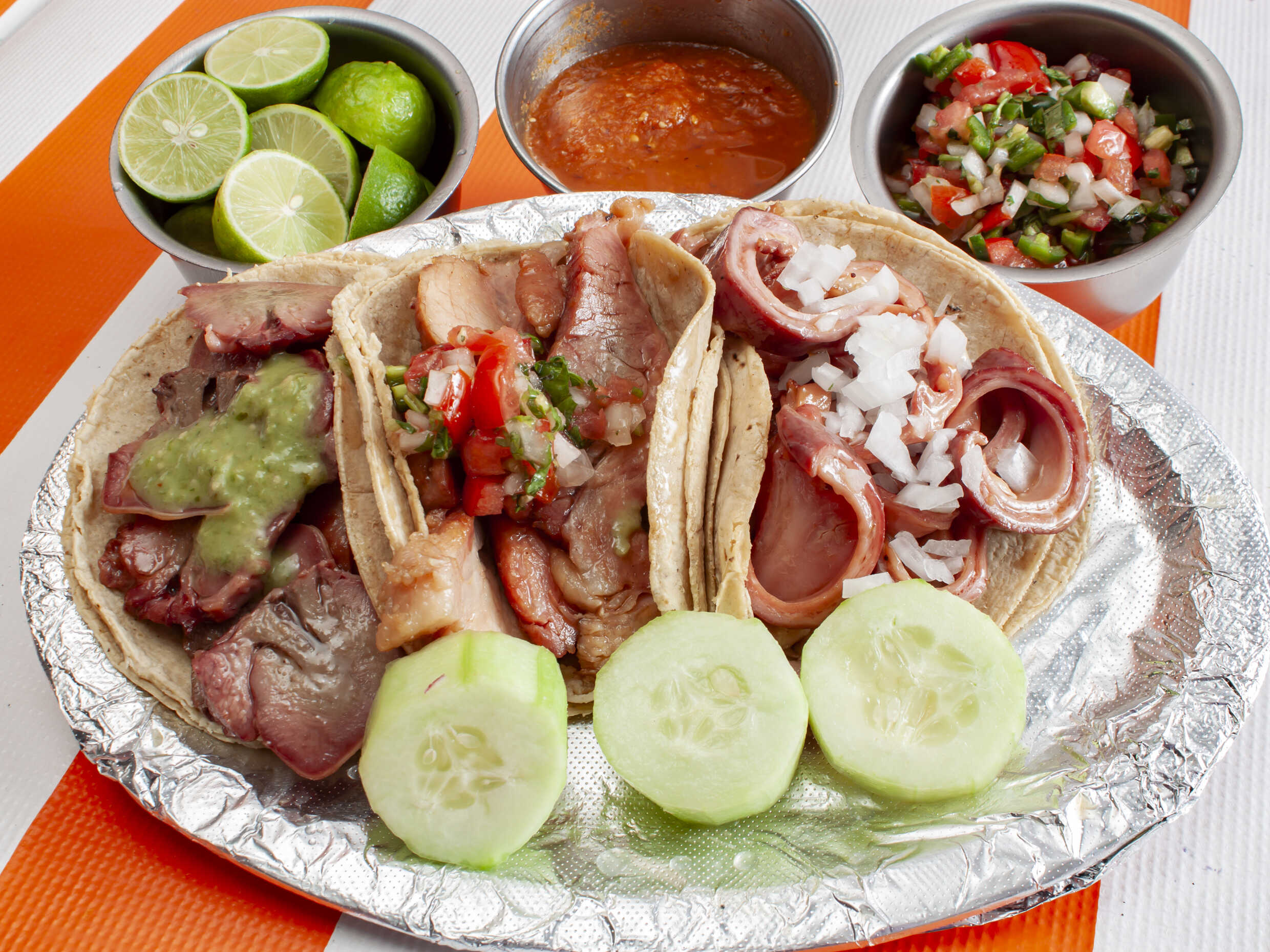 3 Tacos de surtida (surtida económica: está mezcla trae todas las piezas a la misma proporción excepto costilla y nana), incluye 1 refresco de 360 ml.