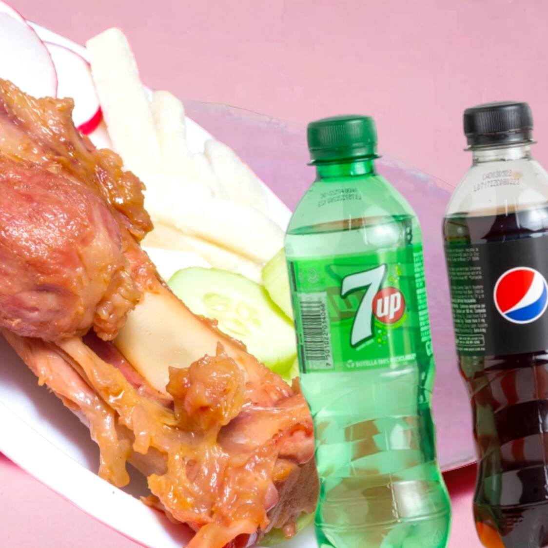 Chamorro Entero Grande*1 + 7up Lata 400Ml*1 + Pepsi 400 ml*1