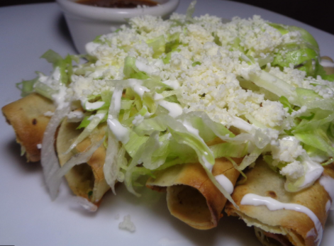 Orden de Tacos Dorados de Pollo o de Carnitas