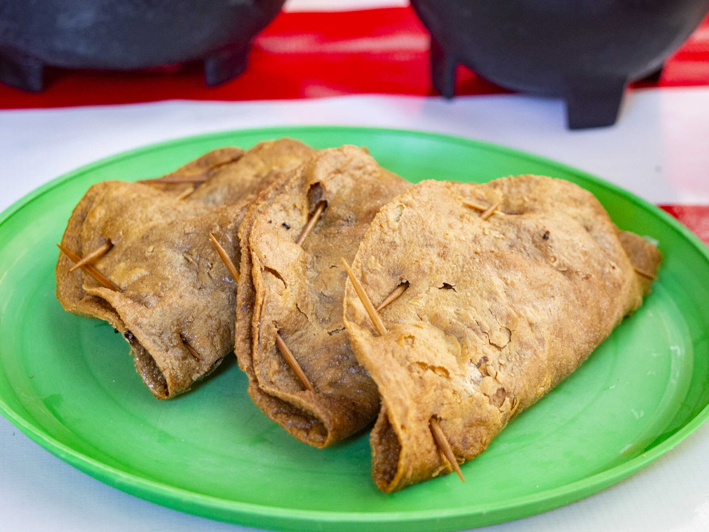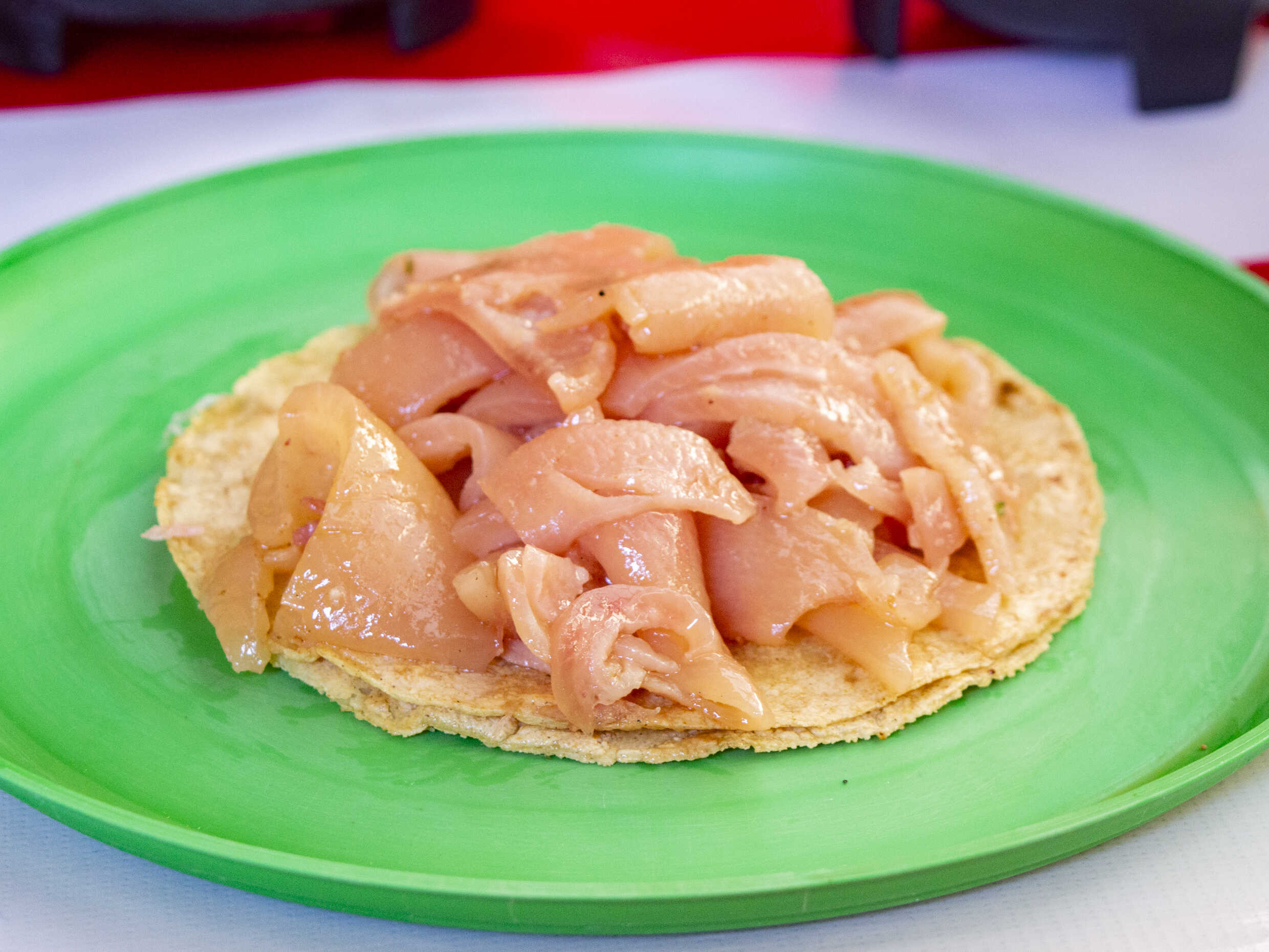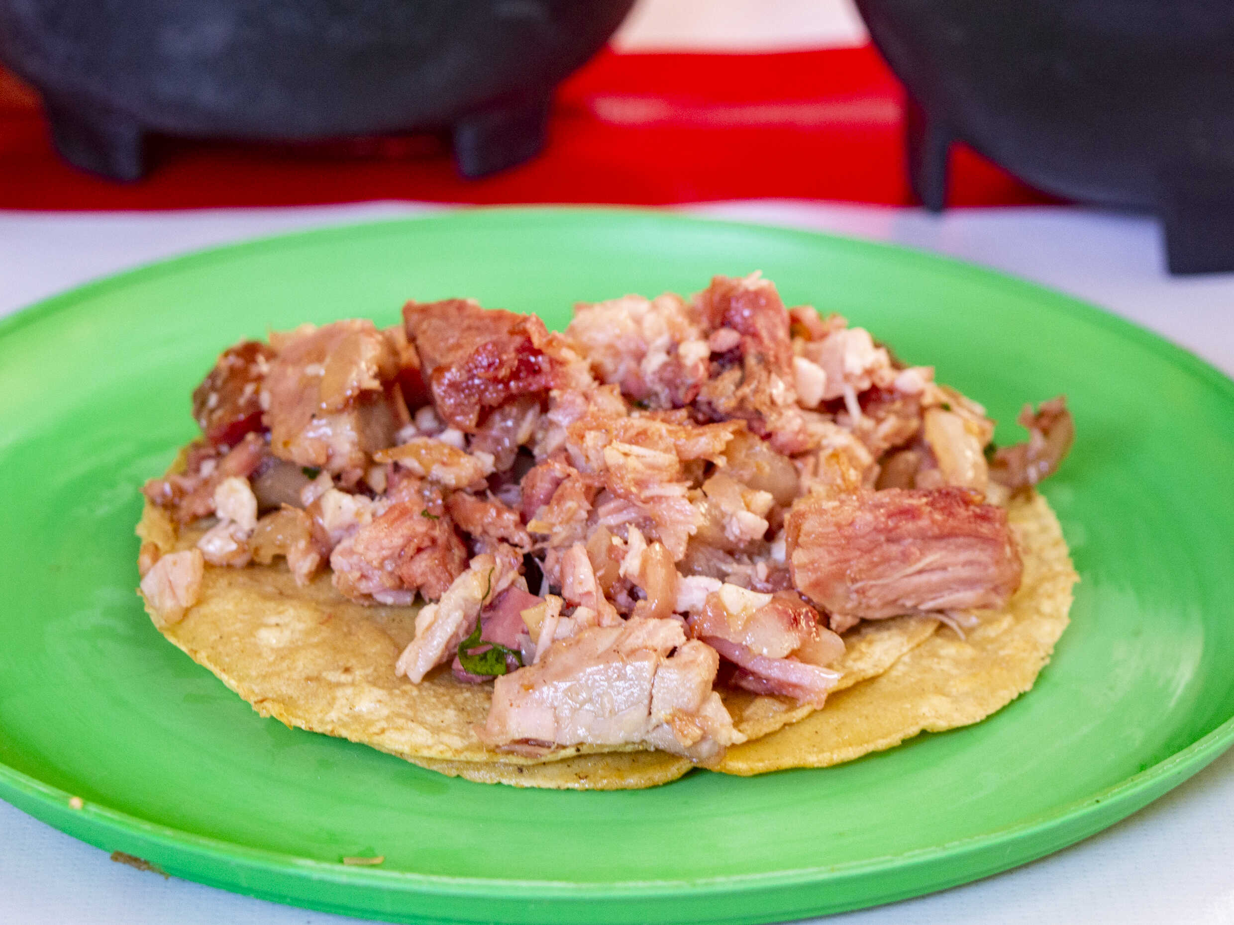 Cesadilla normal con epazote,cebolla , sesos de puerco y se le agregan carnitas al gusto.