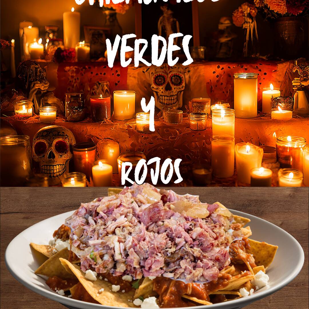 Disfruta de unos chilaquiles con carnitas (Contenedor liso 8x8 cantidad aprox,750g)