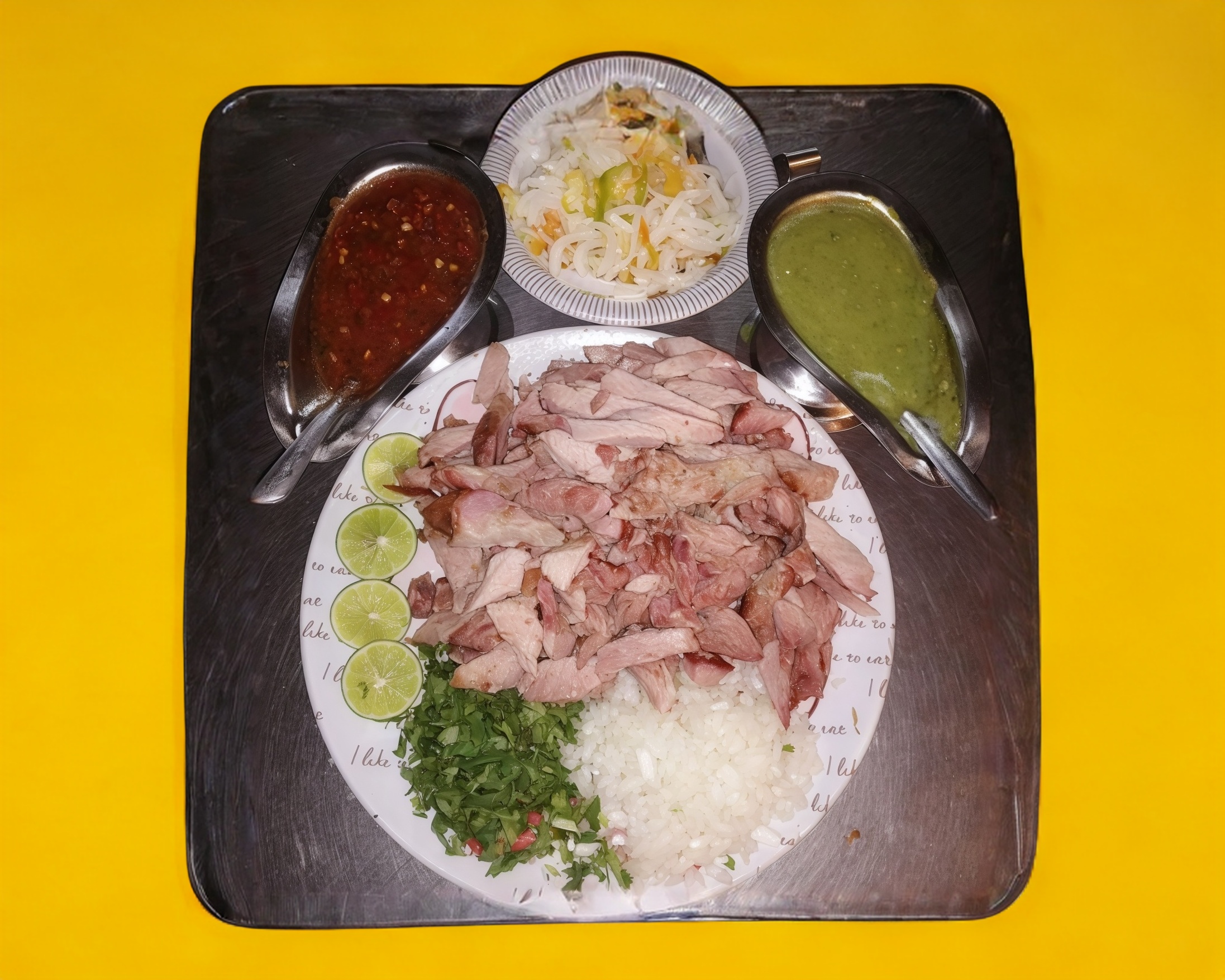 1 Kilo de Maciza, salsa verde, salsa roja , verdura y limones