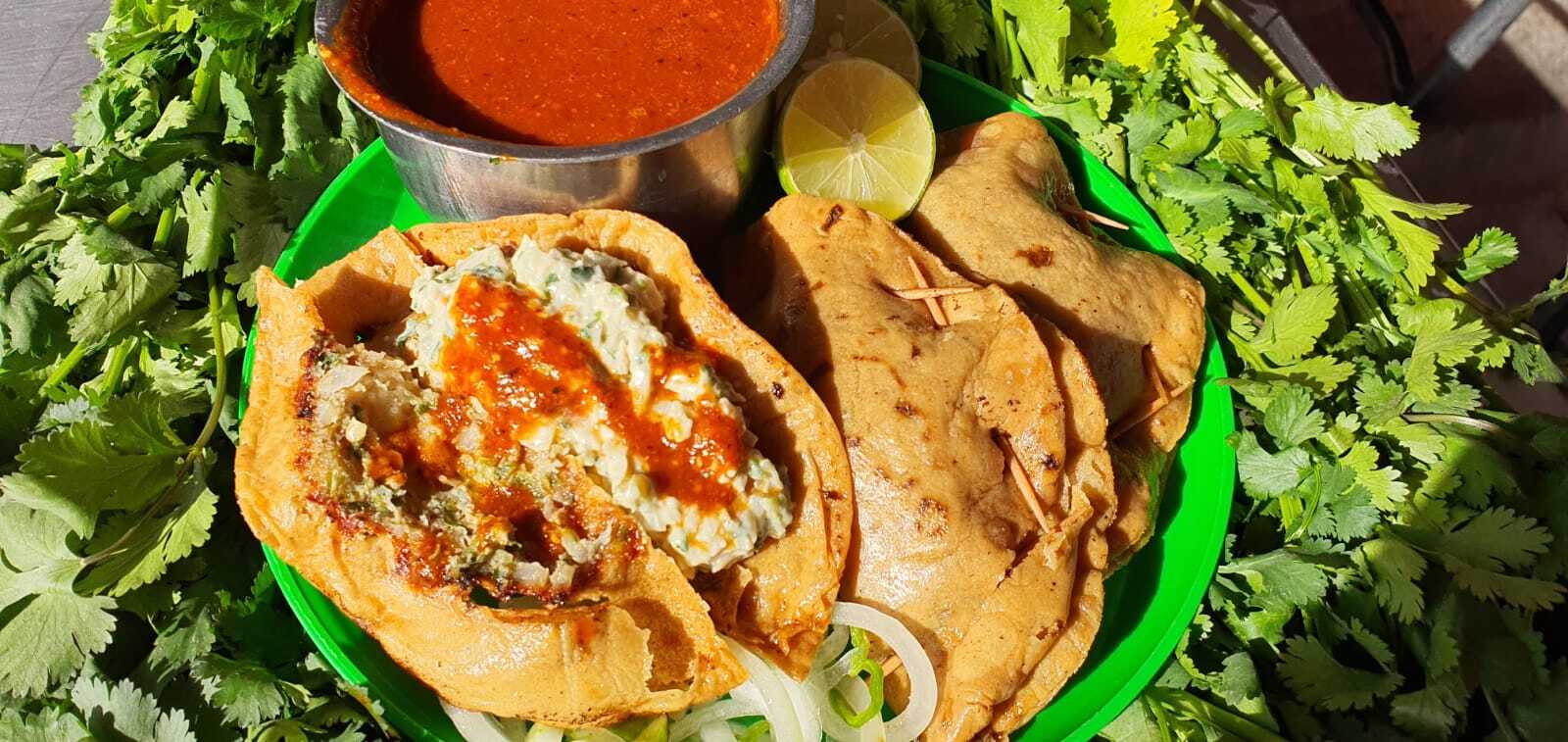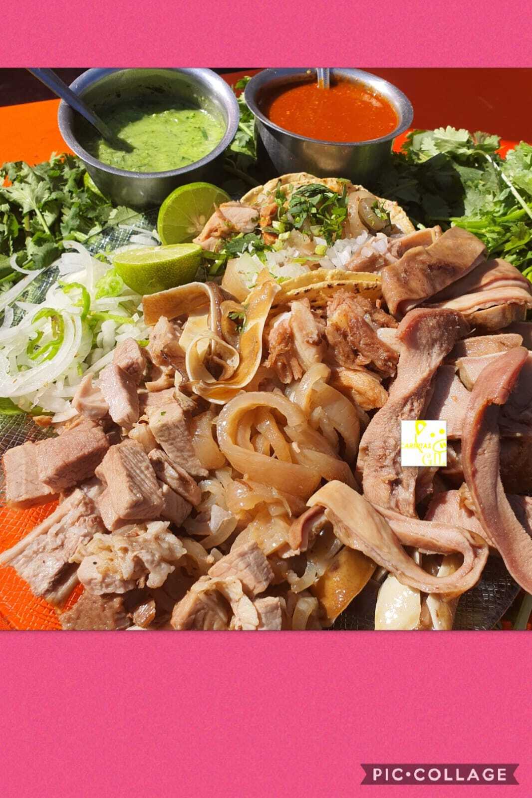 Acompañado con Cilantro ,cebolla ,salsa verde ,roja .
