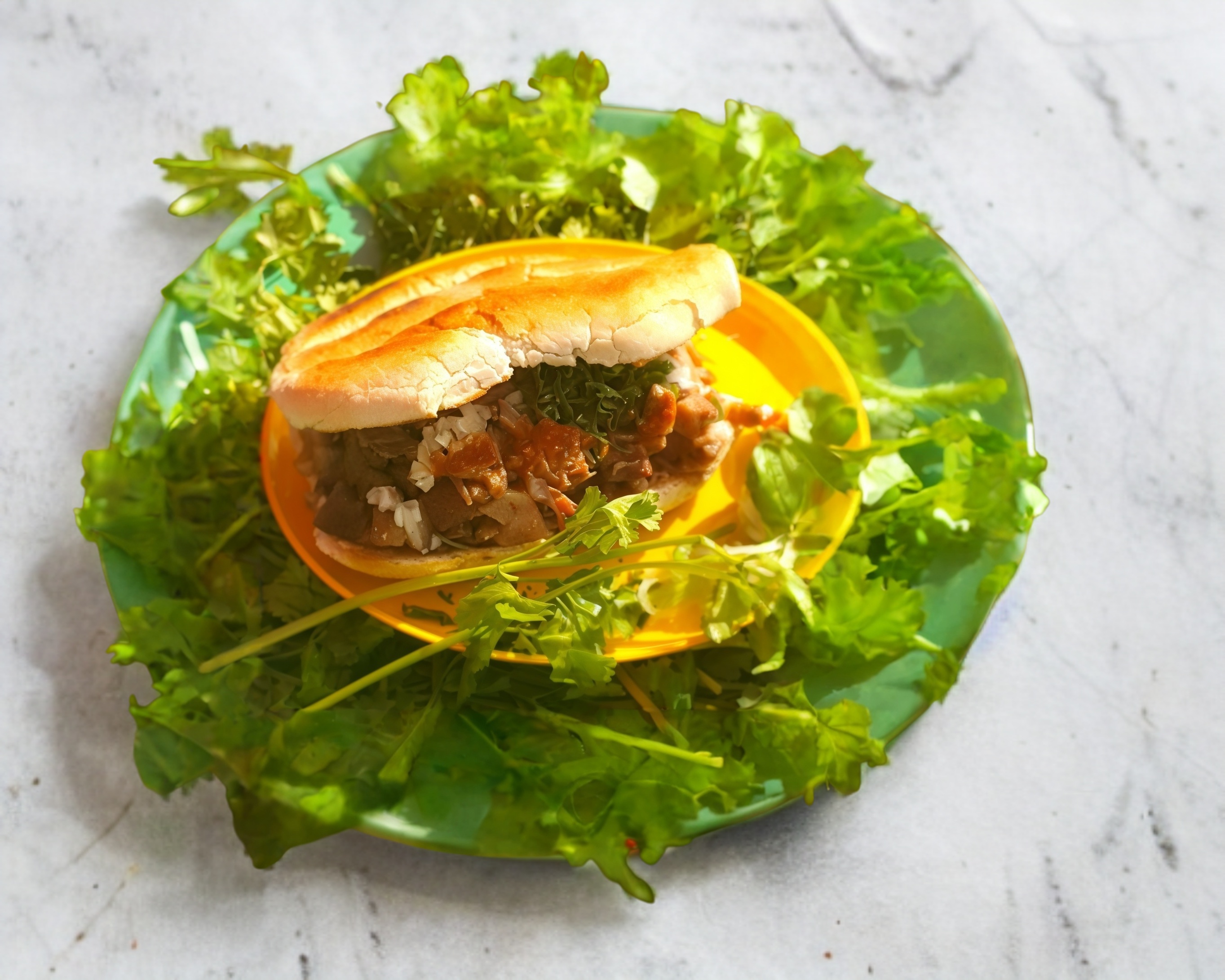 Gordita de 15cm de diametro con 80g de carnitas a elejir acompañado de citrantro cebolla.
