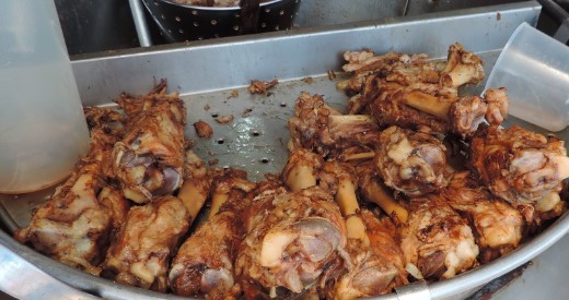 Sesos o carne y se agrega carne extra al gusto.