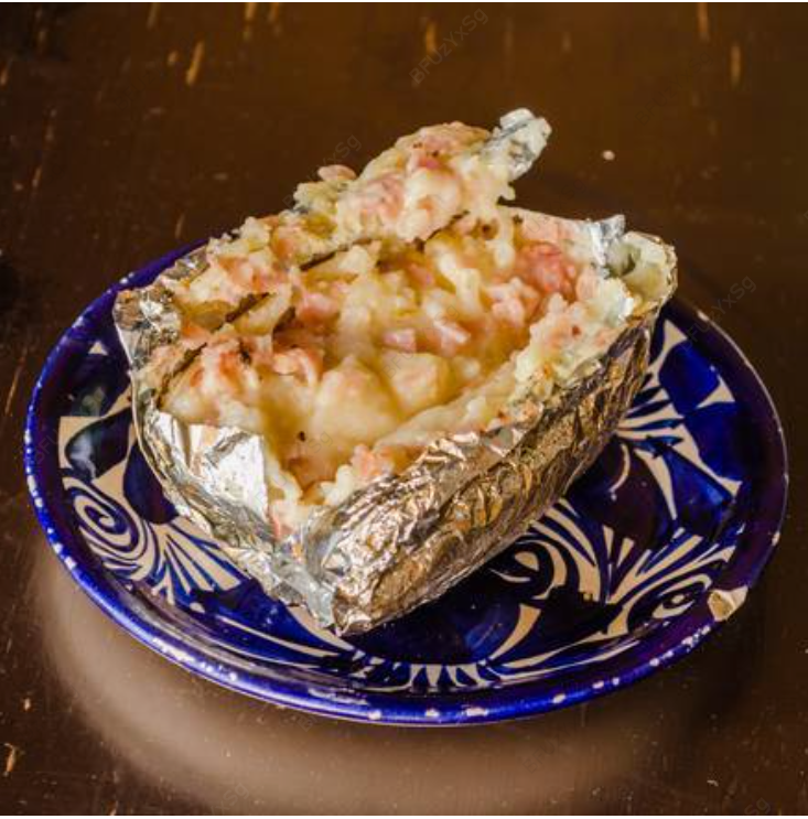 Un cuarto de chorizo argentino al carbón mas orden de papa rellena.