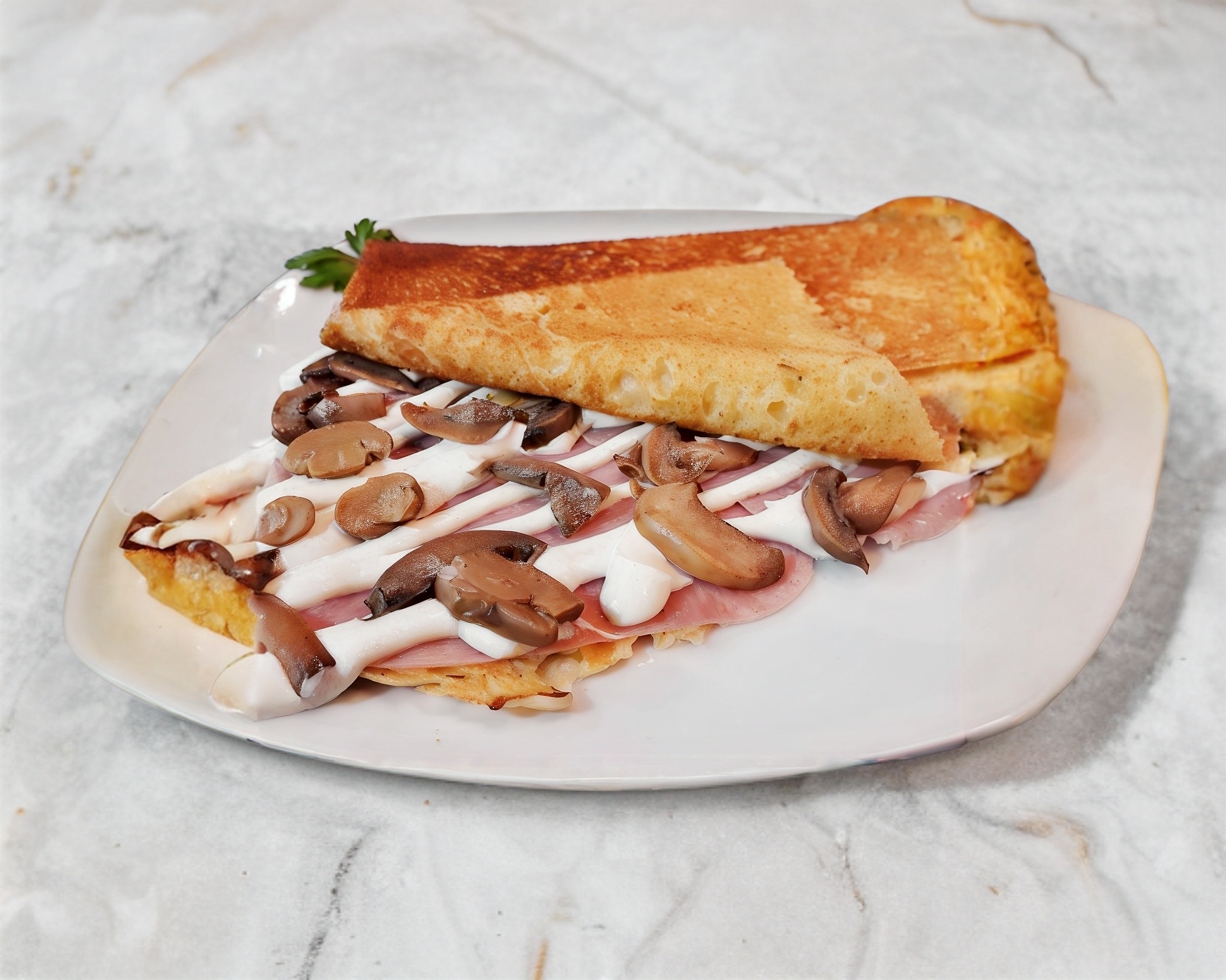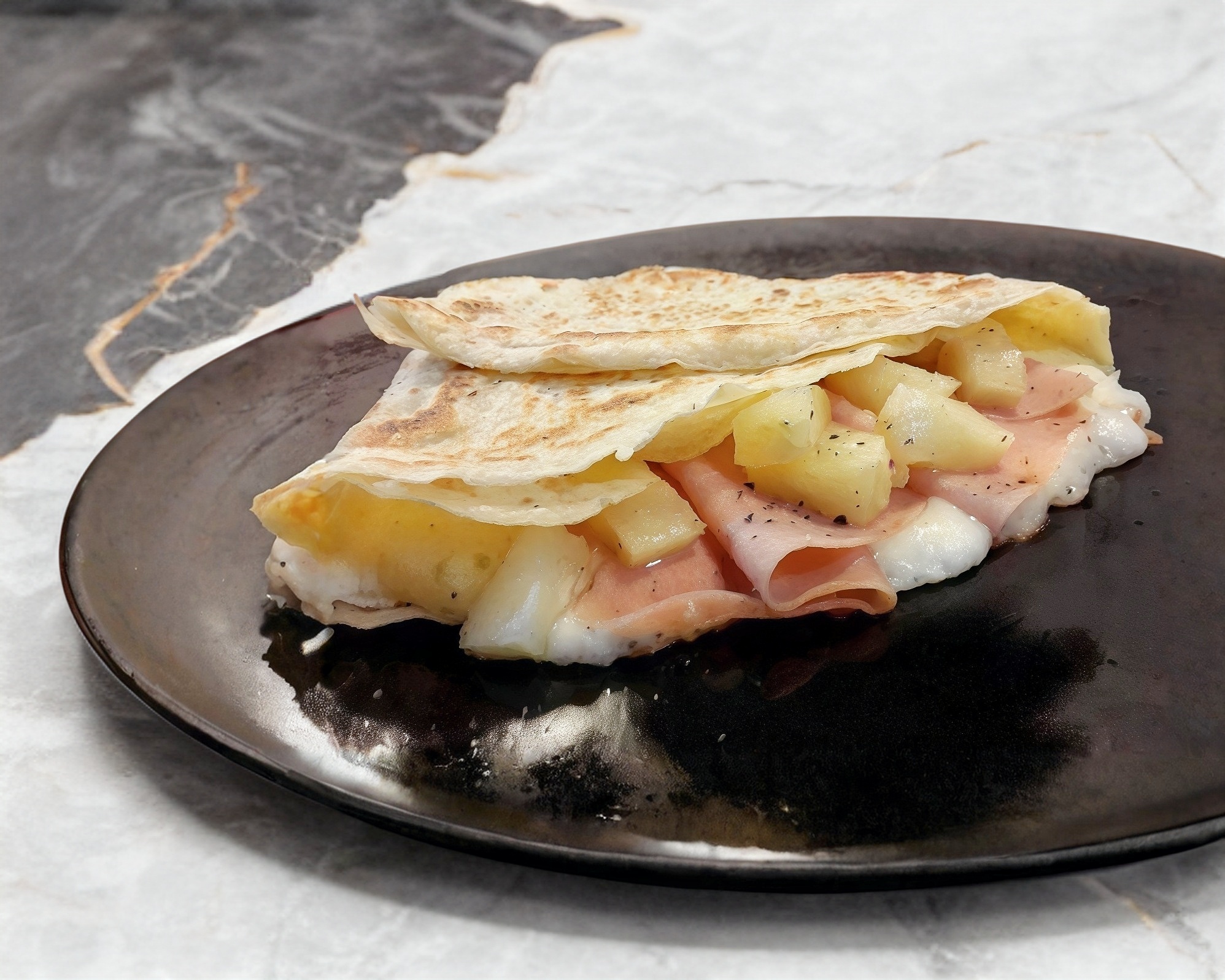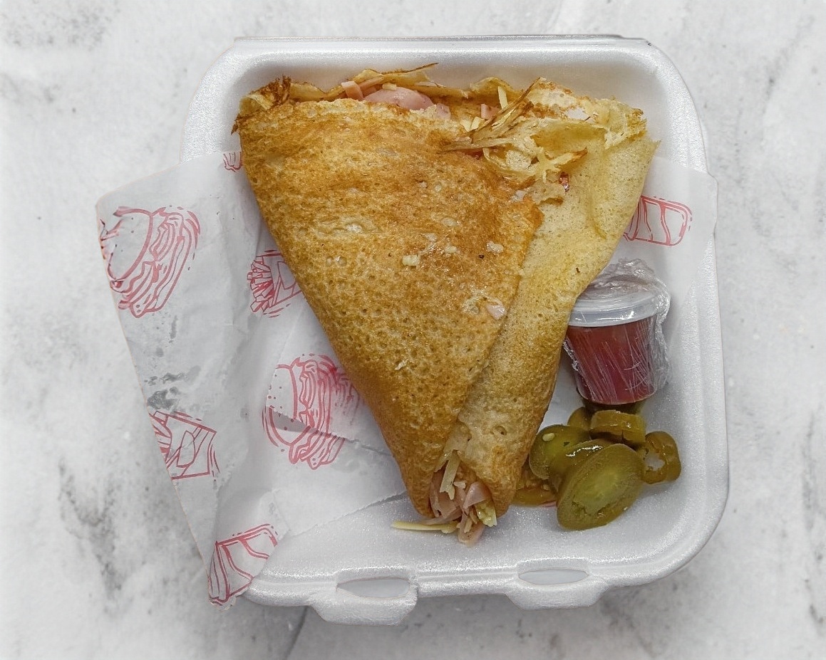 Crepa reyena de philadelphia, Jamón rayado y queso oaxaca derretido