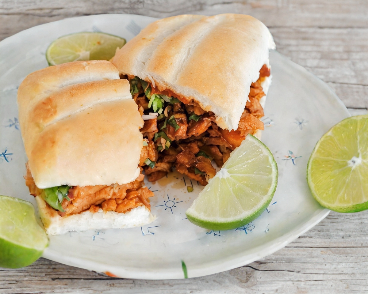 Acompañado de una ración de salsa BBQ y chiles en vinagre.