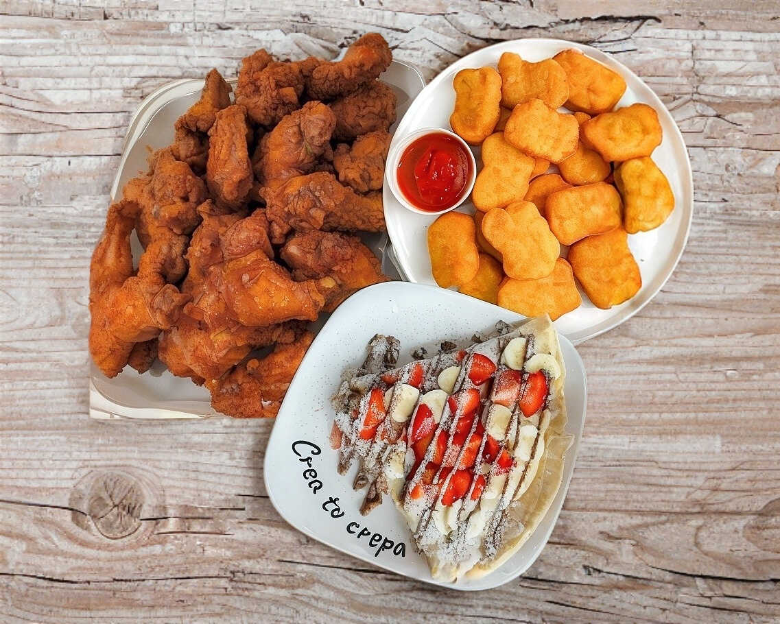 ¡Crea tu crepa con dos ingredientes!*1 + Orden Grande de Nugets*1 + Orden de Alitas Mediana*1