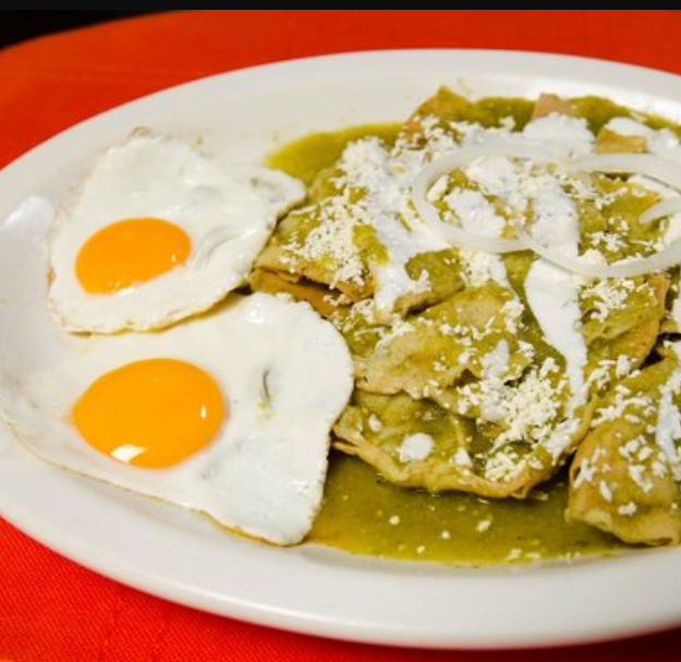 Chilaquiles acompañados con 2 huevos al gusto.