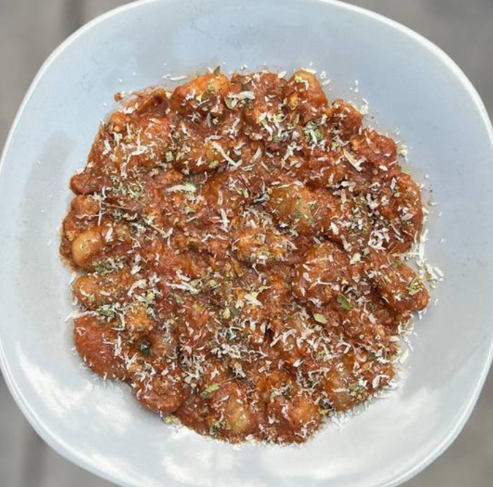 Pasta de papa con salsa roja italiana, albahaca, orégano y queso parmesano.