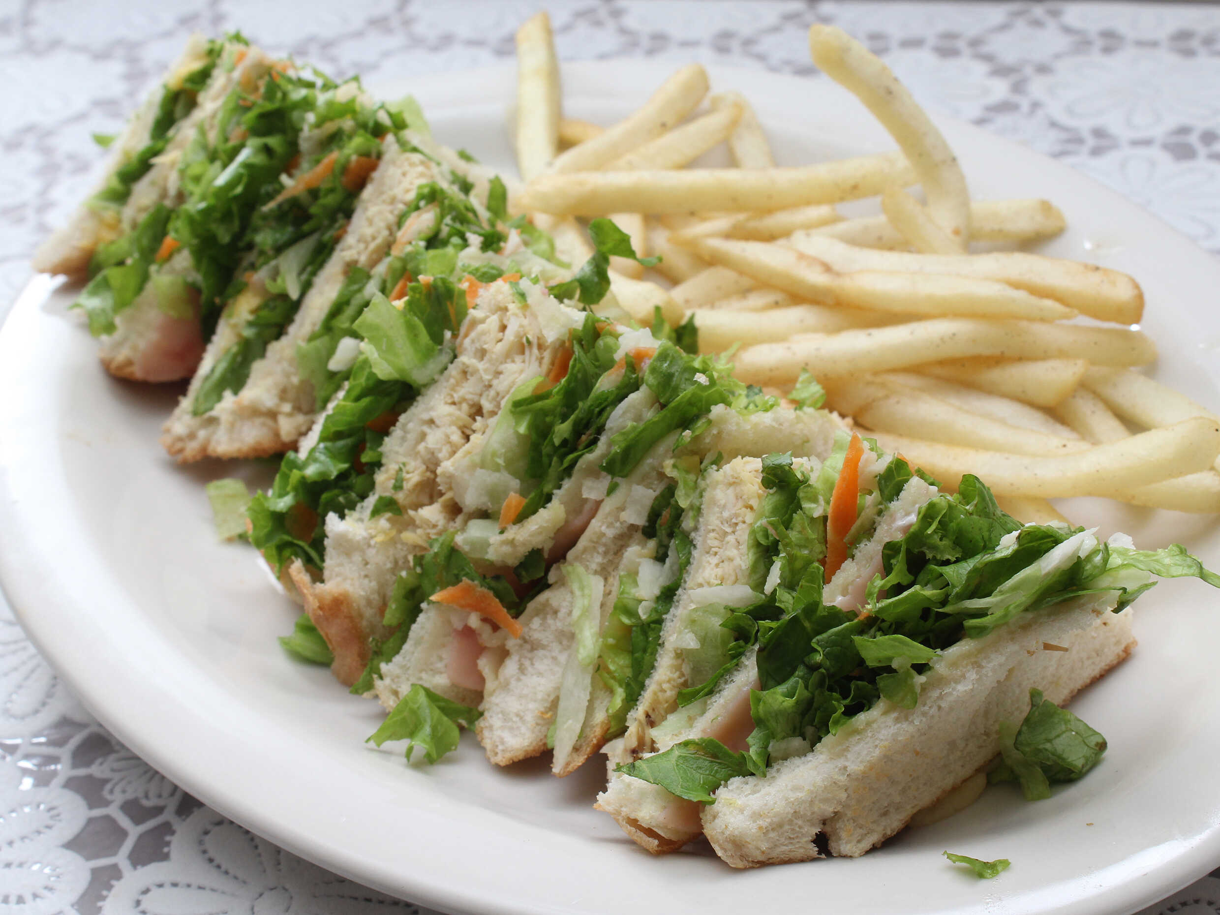De pan blanco o integral, papas a la francesa y ensalada rusa