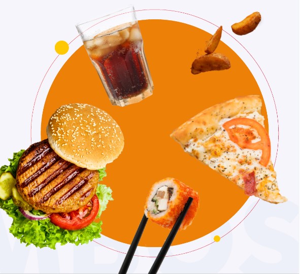 5 Hamburguesas sencillas con papas a la francesa y 5 refrescos.