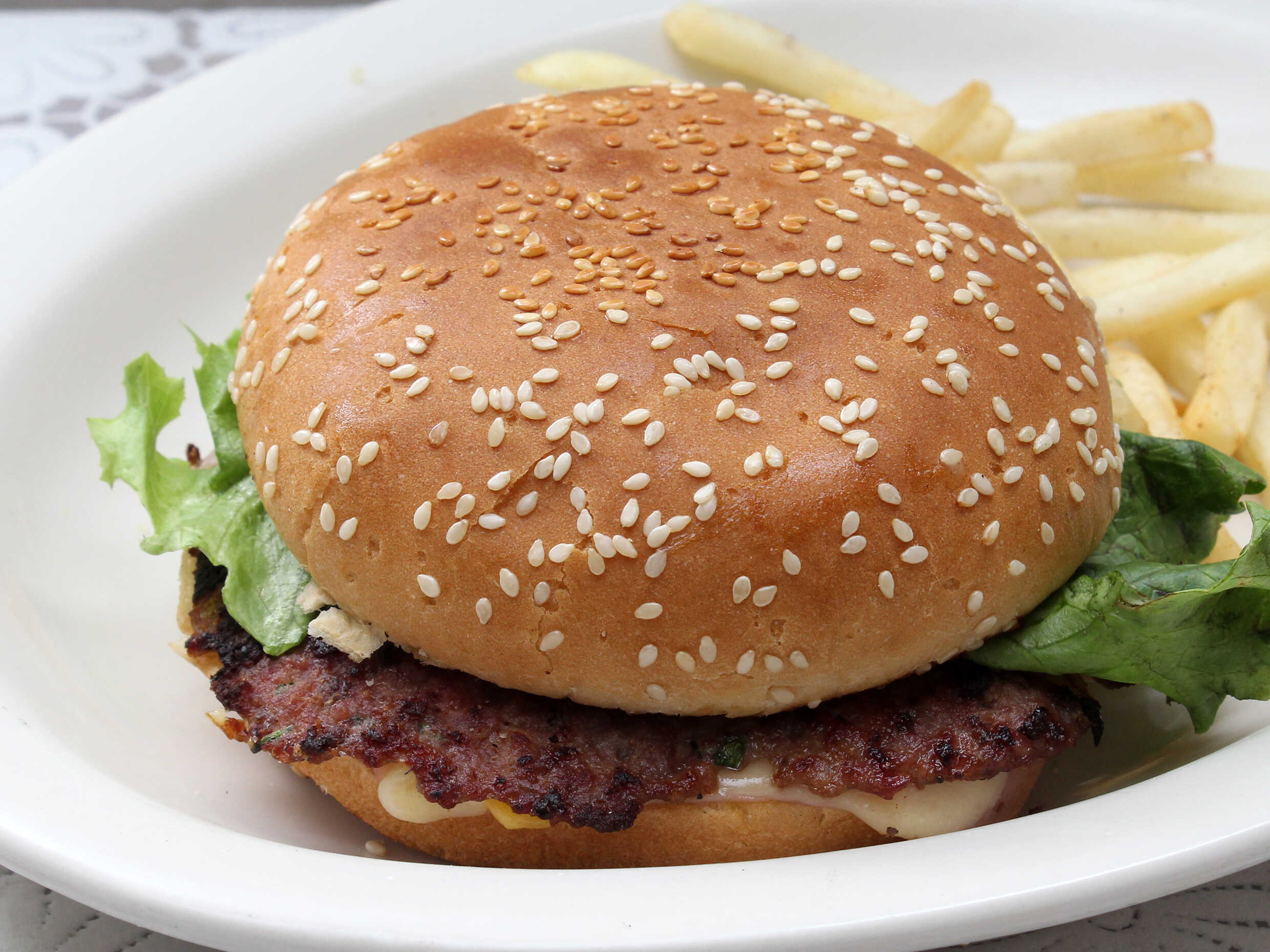 Hamburgesa con doble carne de res preparada con la receta de la casa , mayonesa, jitomate, lechuga, jamón, queso amarillo.