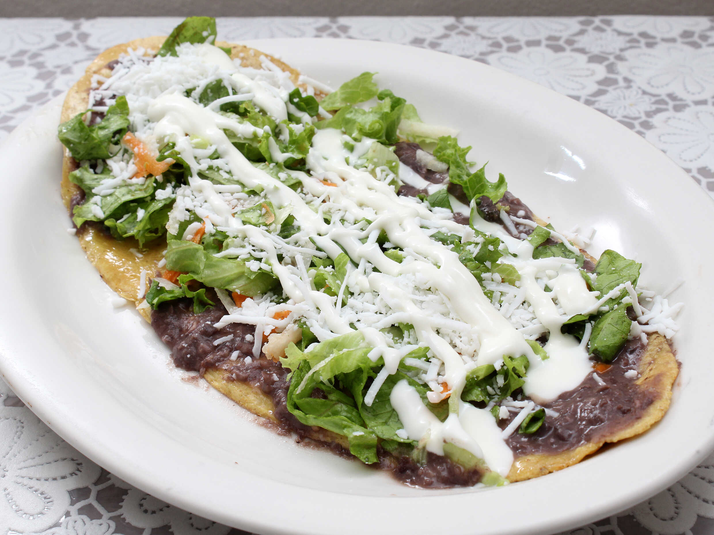Huarache de 30cm recien elaborado, con 100g de queso oaxaca, frijoles, lechuga, queso, crema y salsa del día.