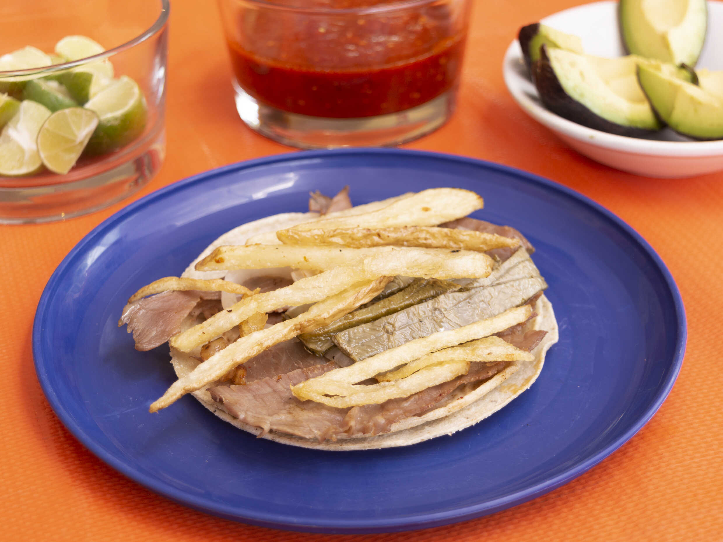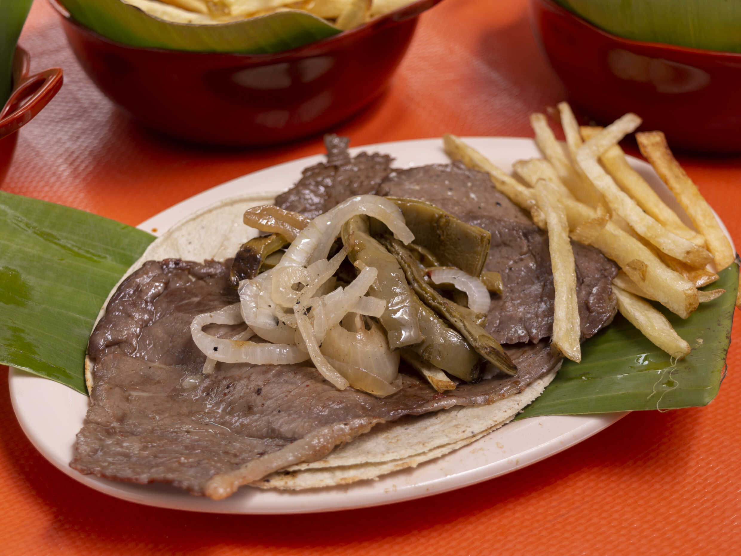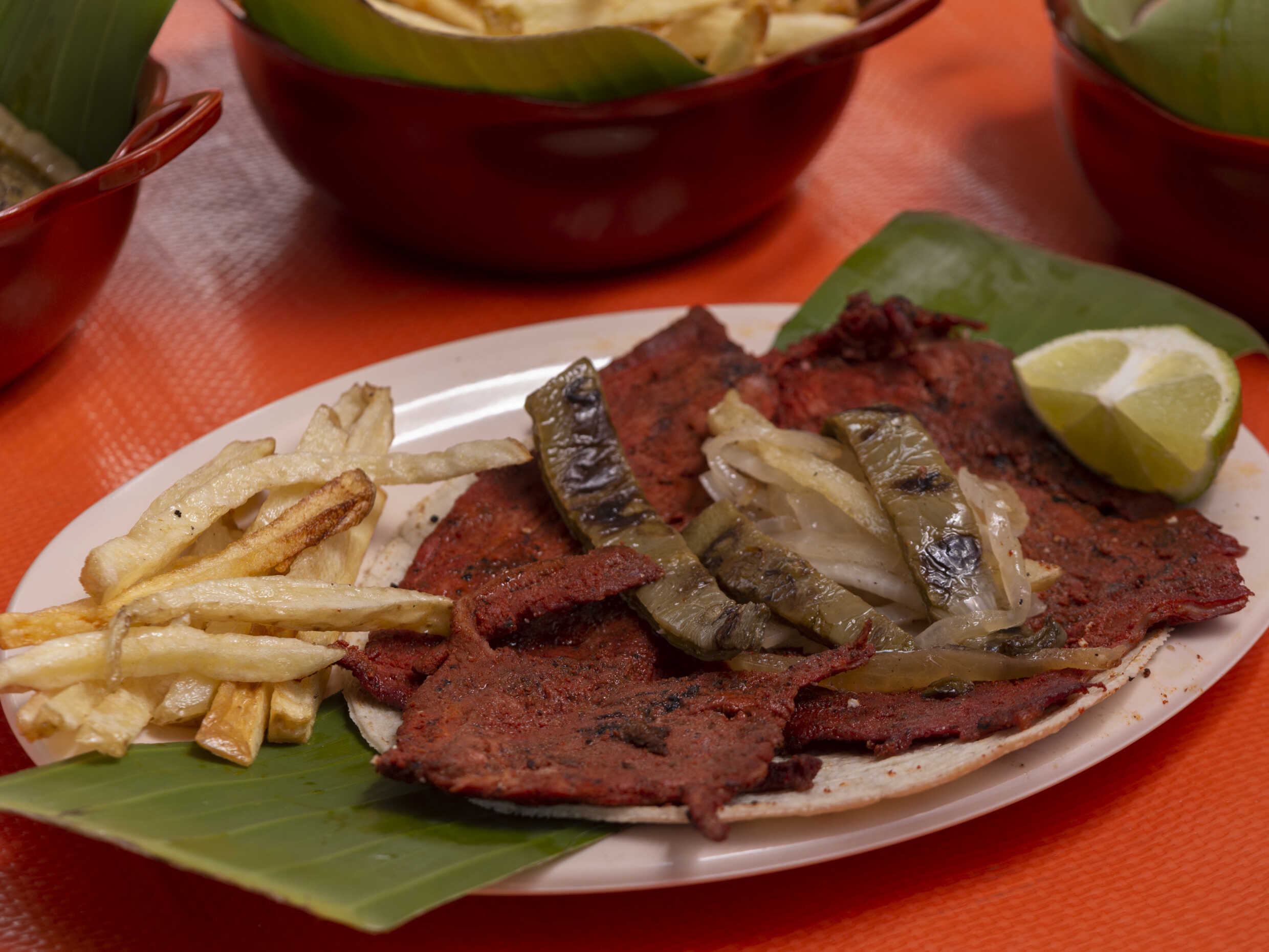1 kg. de carne a elegir, papas grandes, nopales, cebollitas, salsas y limones.