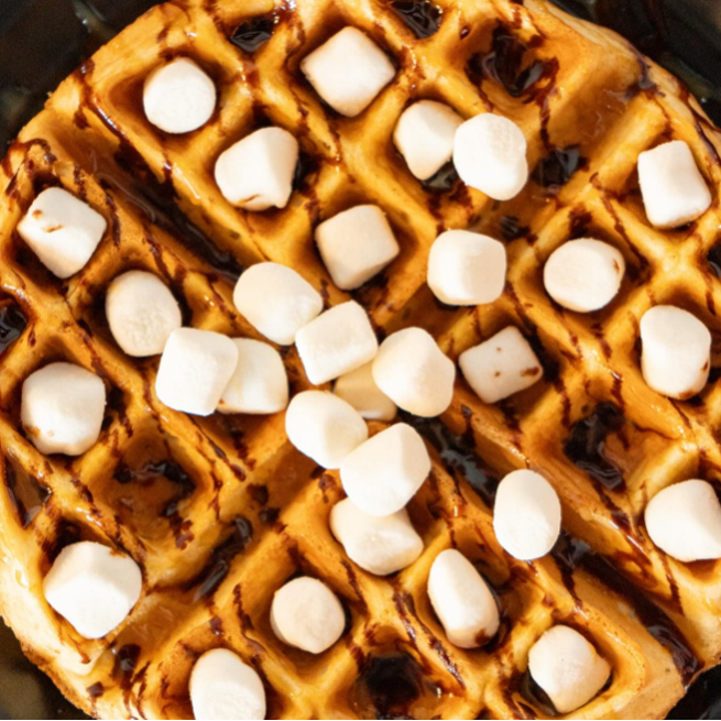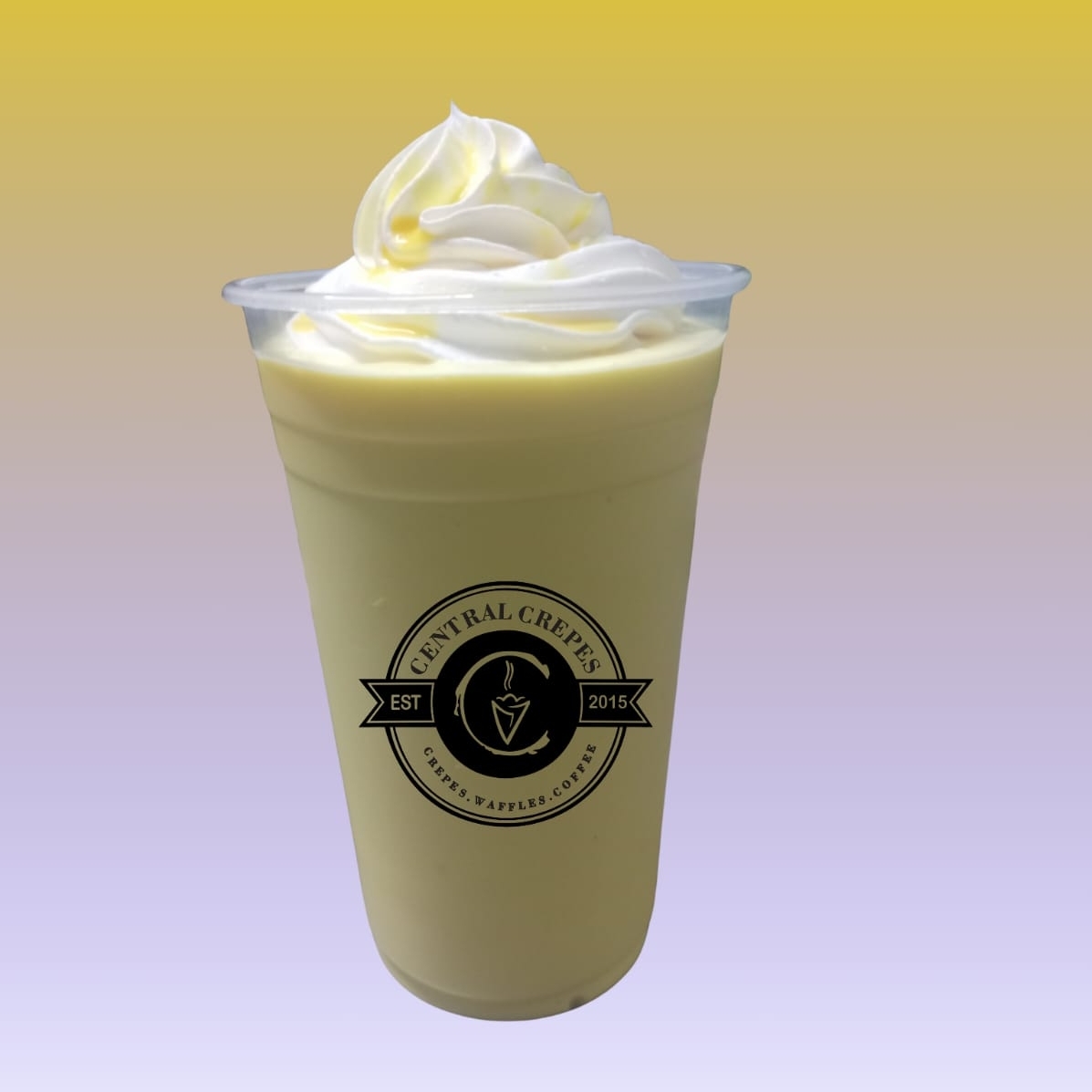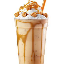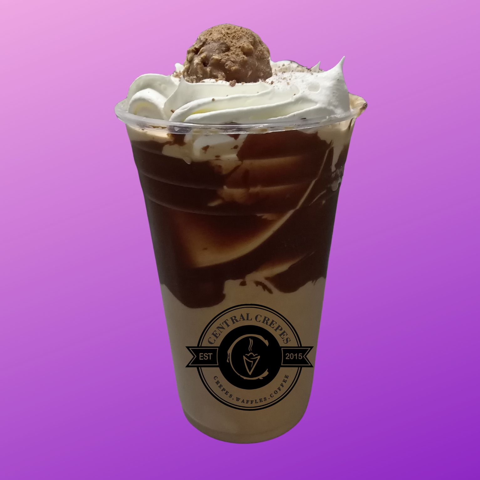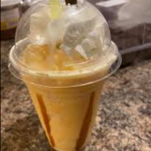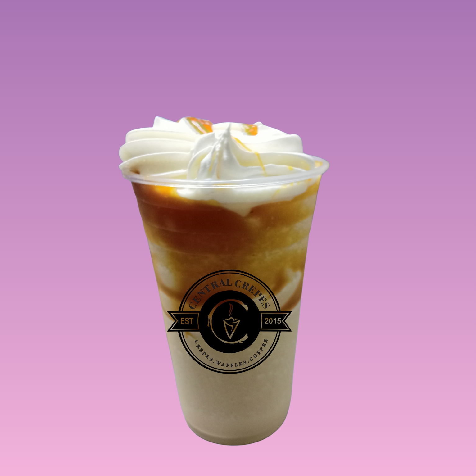 Helado vainilla, crema batida, malvaviscos y caramelo.