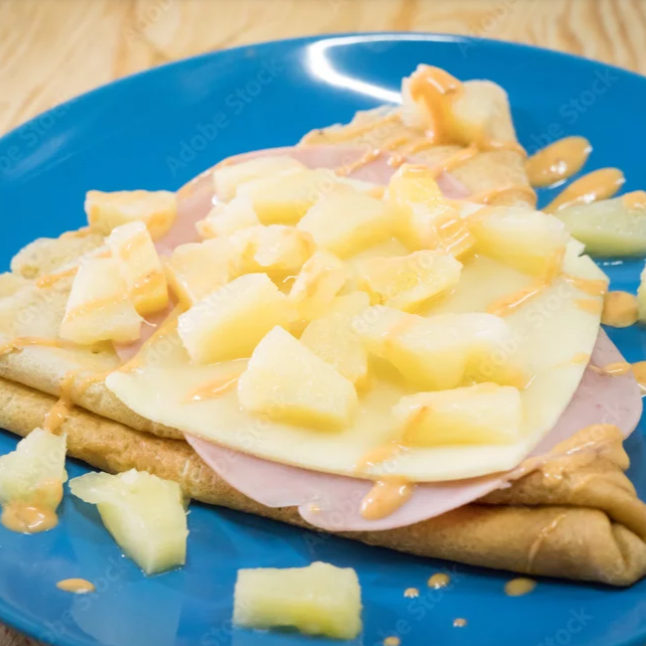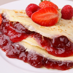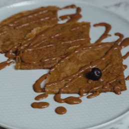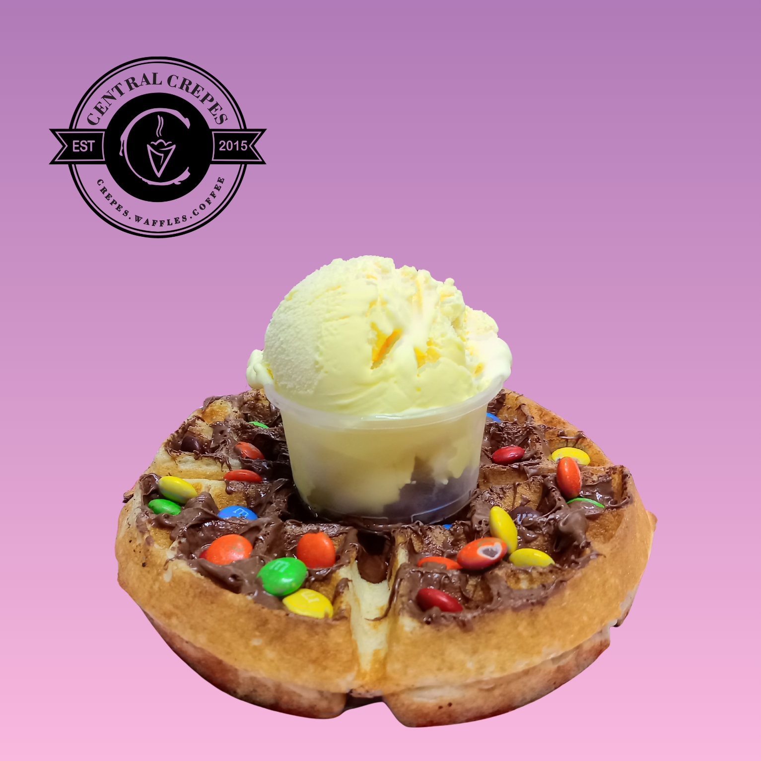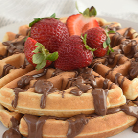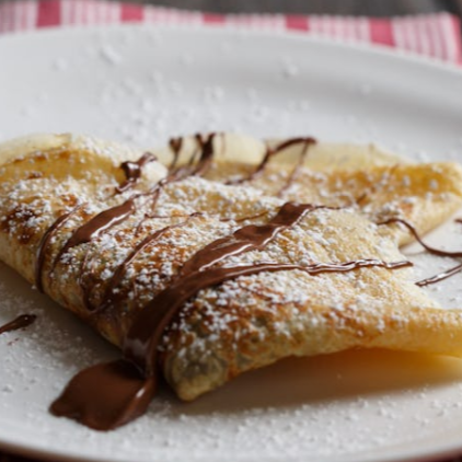 Elaborada con Nutella, fresa, crema batida, conejito y rayadura Turín.
