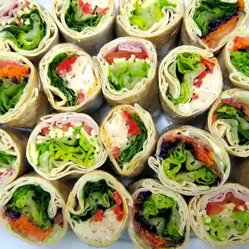 Wrap de salami, lomo ahumado, pechuga de pavo, queso, espinacas, aceitunas negras y aderezo ranch.