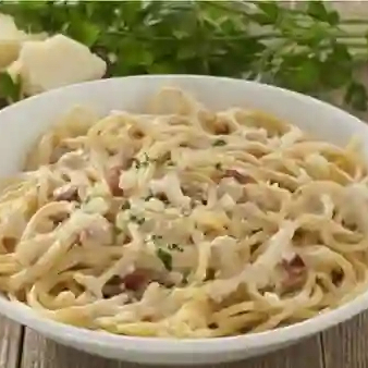 Fusilli a la mantequilla con tocino, champiñones y queso parmesano, incluye bebida del día 500 ml.