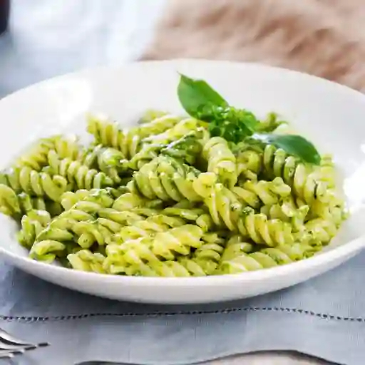 Pasta fusilli a la mantequilla y cilantro finamente picado con queso parmesano, incluye bebida del día 500 ml.