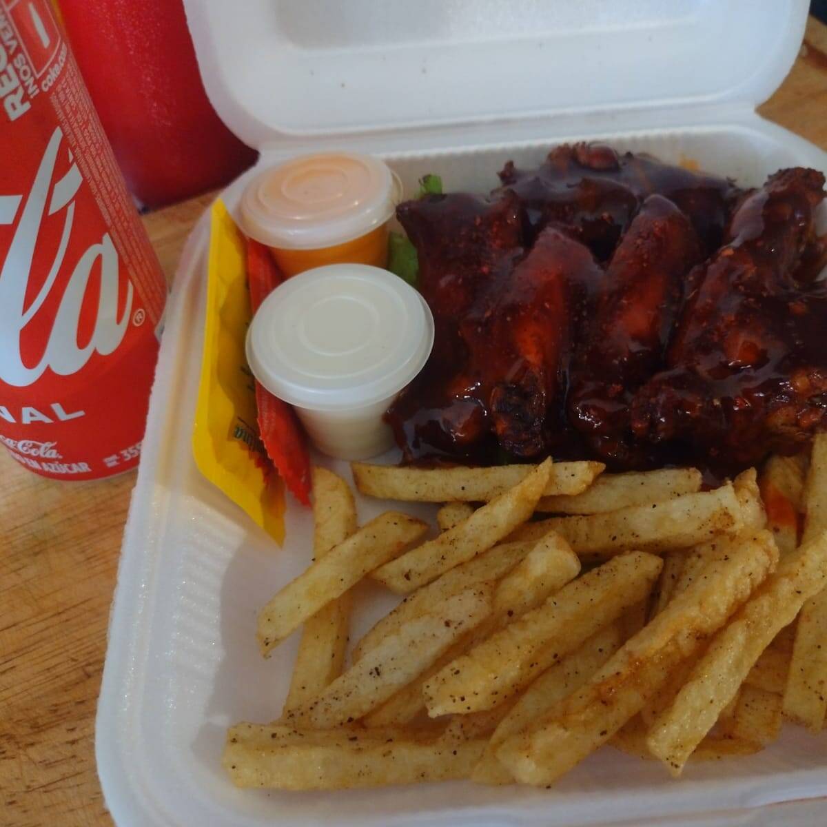 Alitas BBQ con papas a la francesa, coca-cola de lata 355 mil