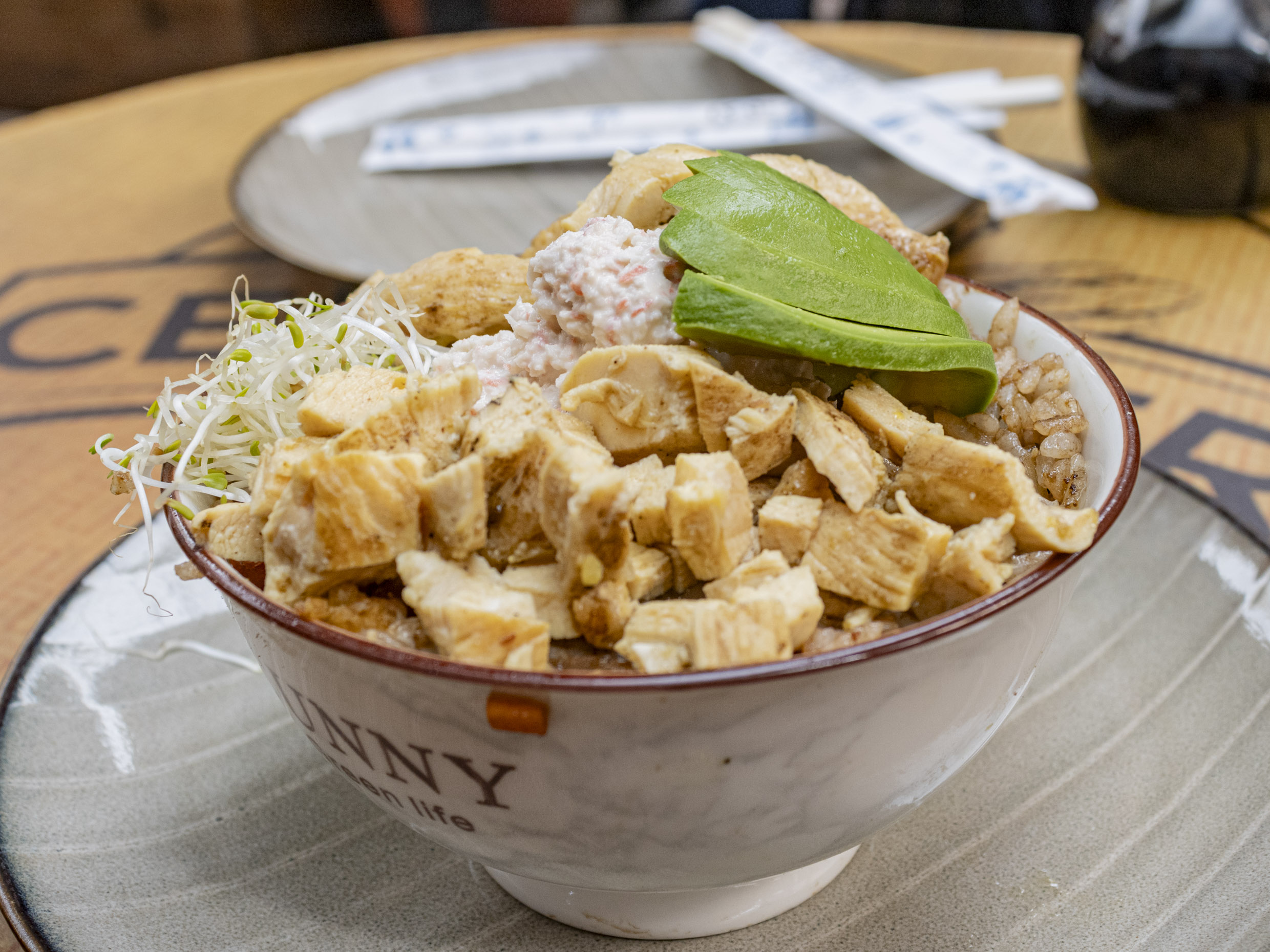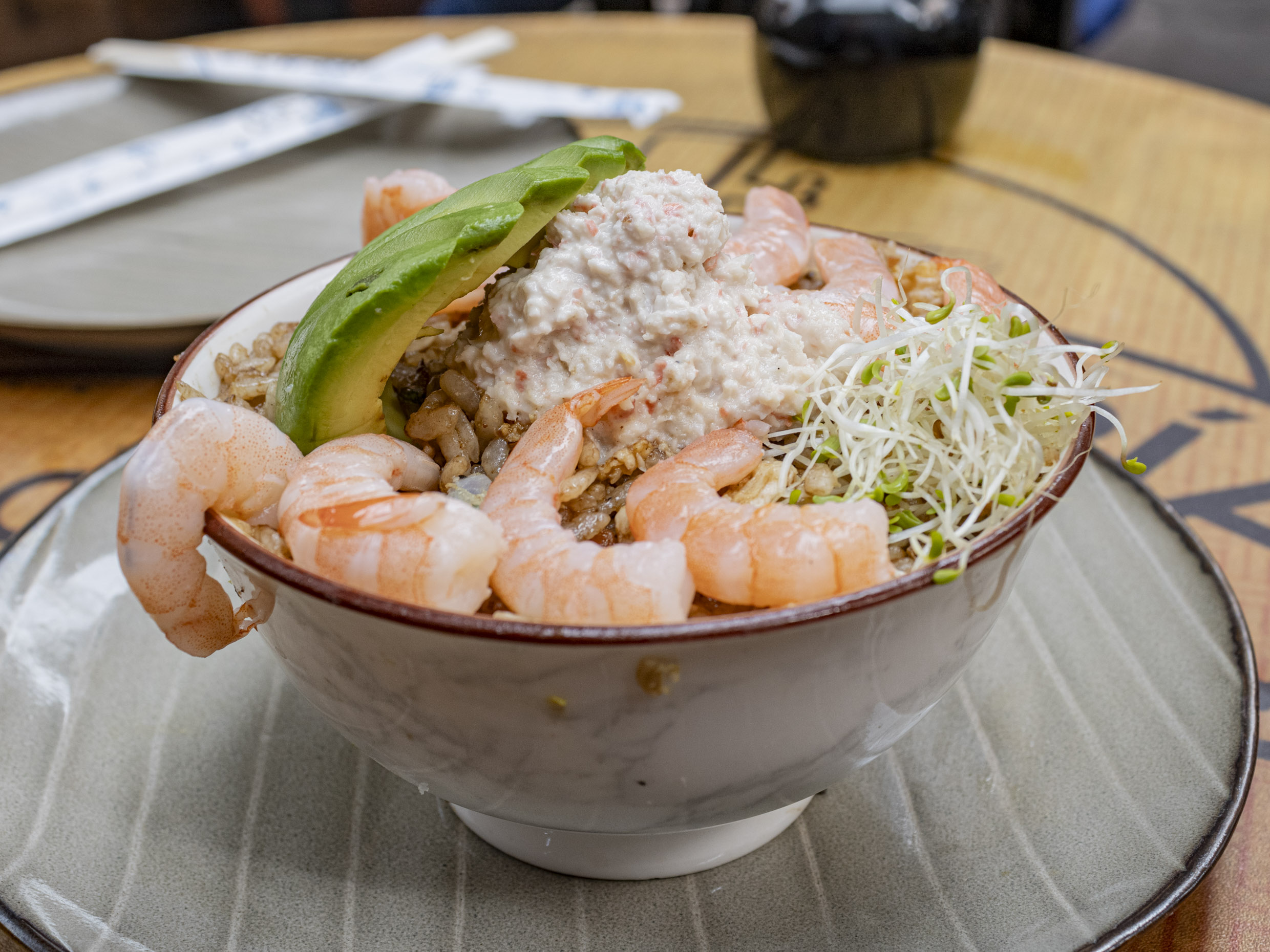 Queso Philadelfia, cangrejo y pepino PF aguacate y salsa de chipotle