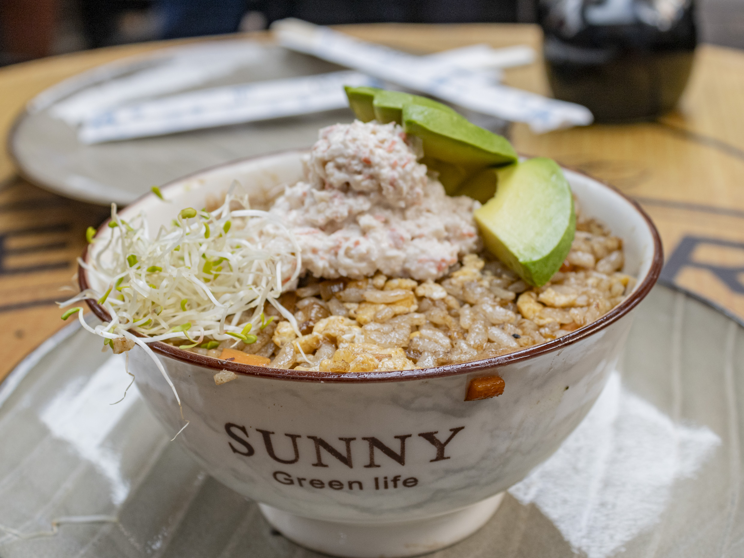 Mango , cangrejo y aguacate PF. Queso Philadelfia y ajonjoli negro