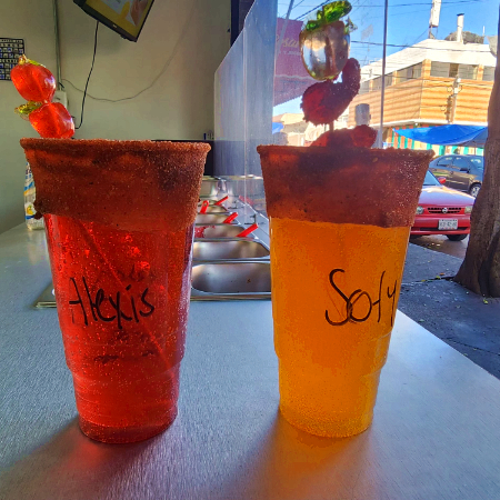 clamato preparado con limon, sal y salsas negras