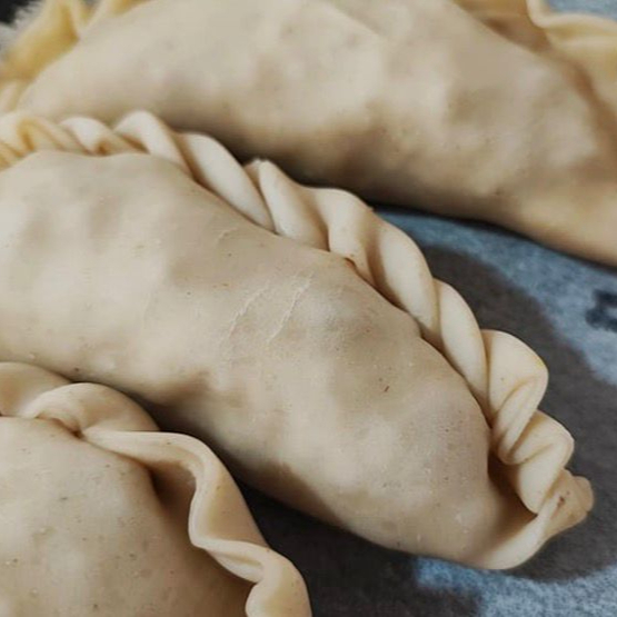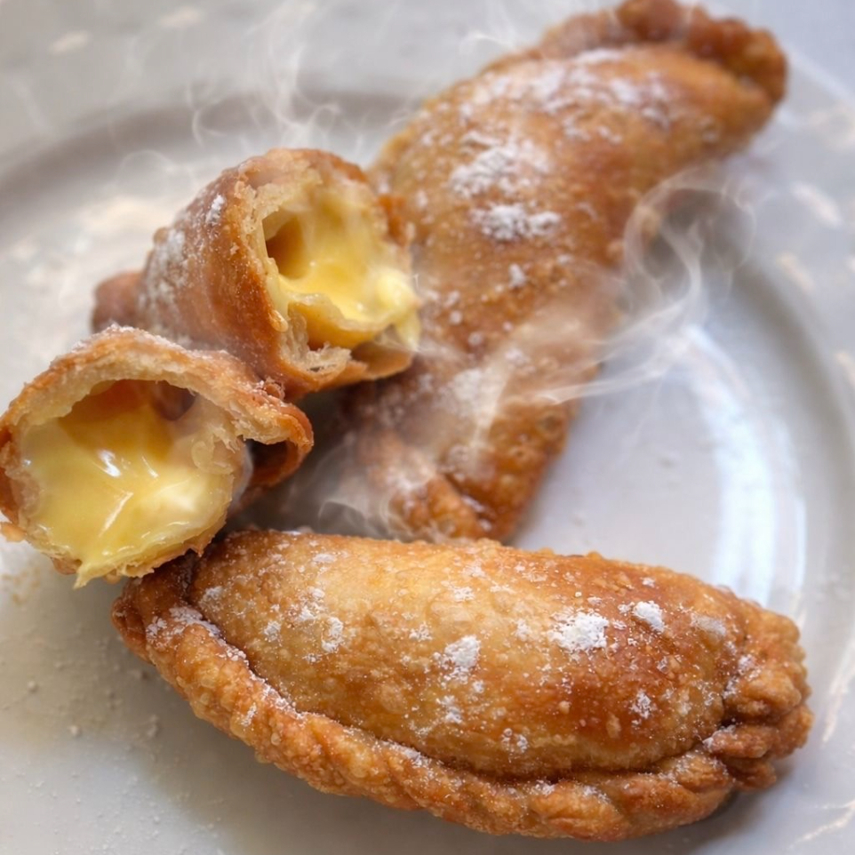Empanada frita rellena de jamón de pierna y queso mozzarella. Incluye chimichurri y salsa gaucha.