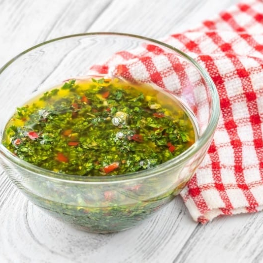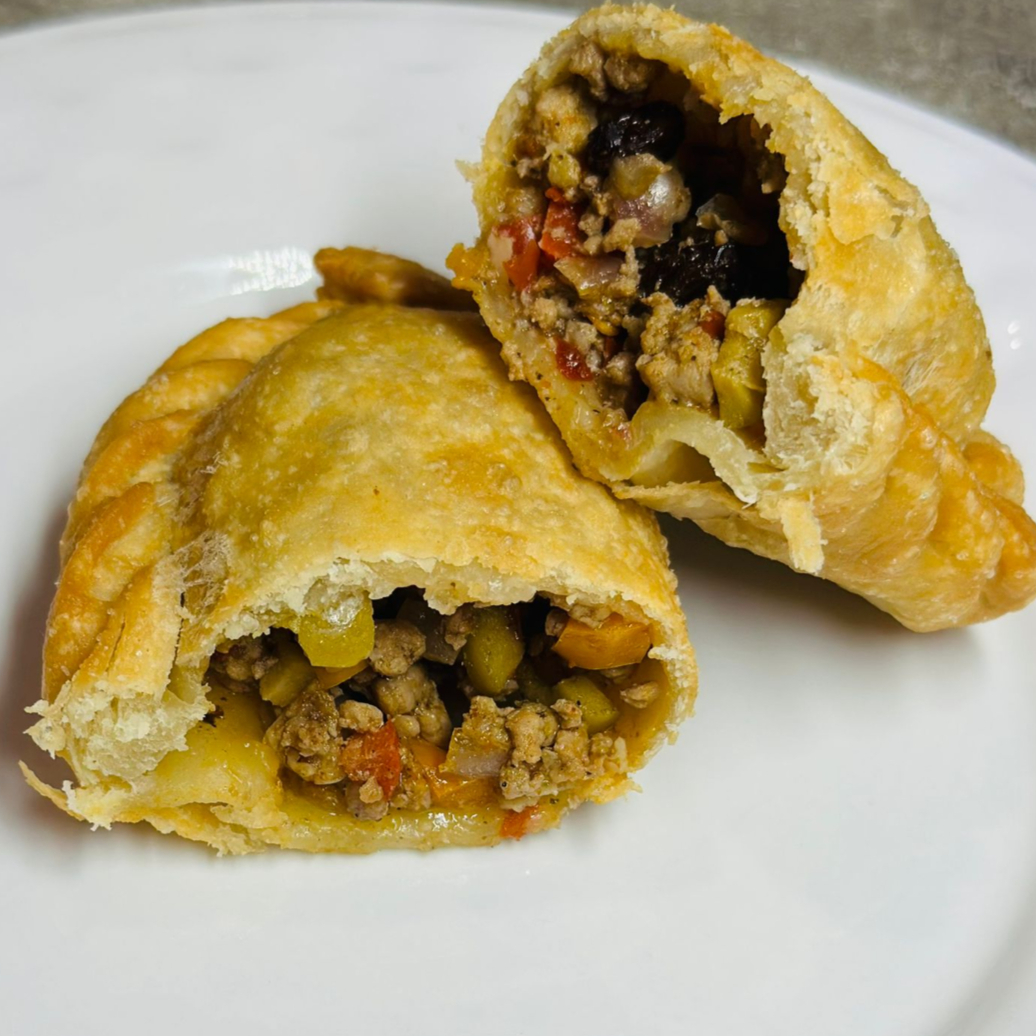 Empanada frita rellena de carne molida, pimiento y aceitunas. Incluye chimichurri y salsa gaucha.