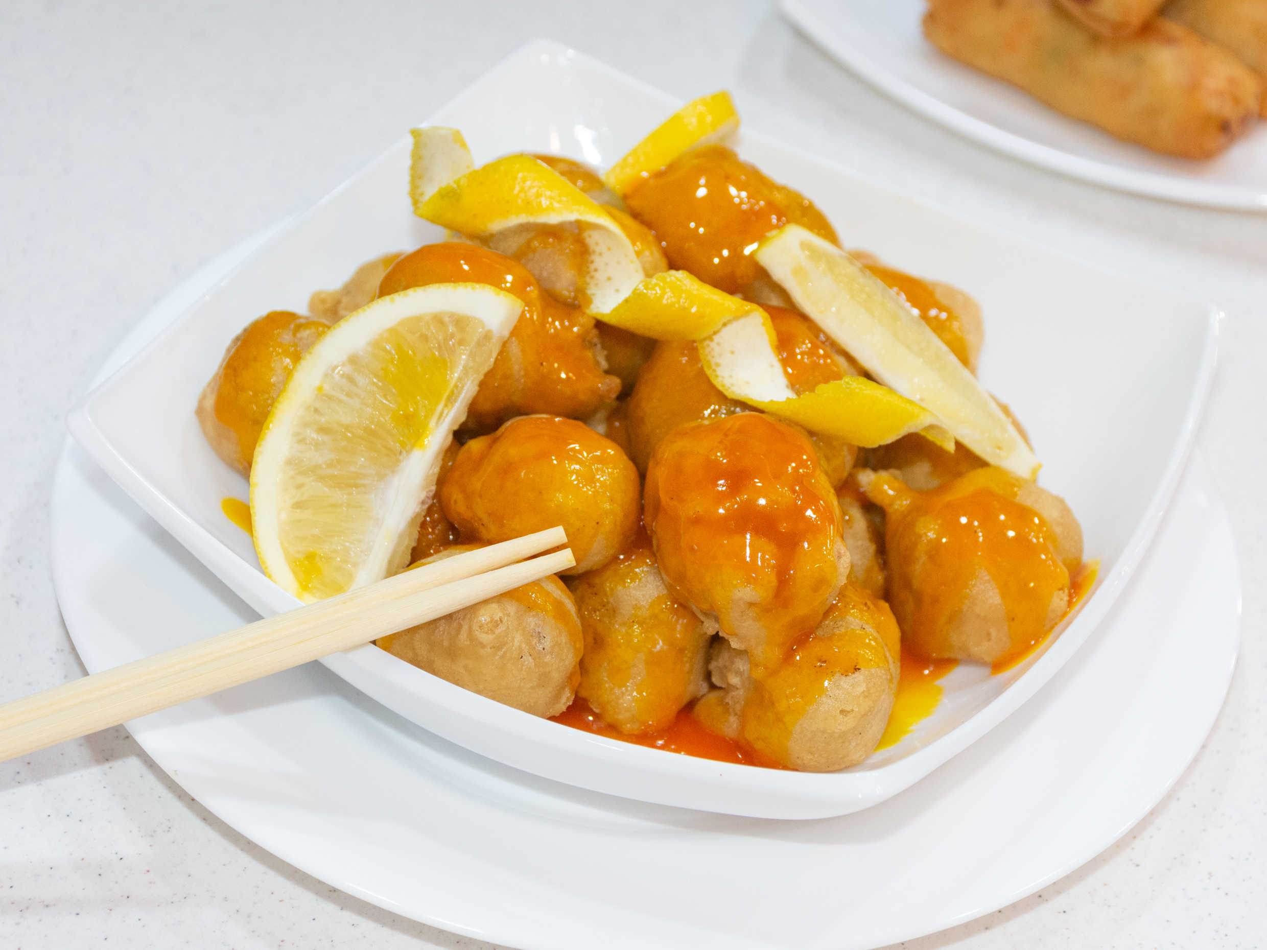 2 porciones de Arroz ò pasta + 2 Guisados + 2 Rollos primavera