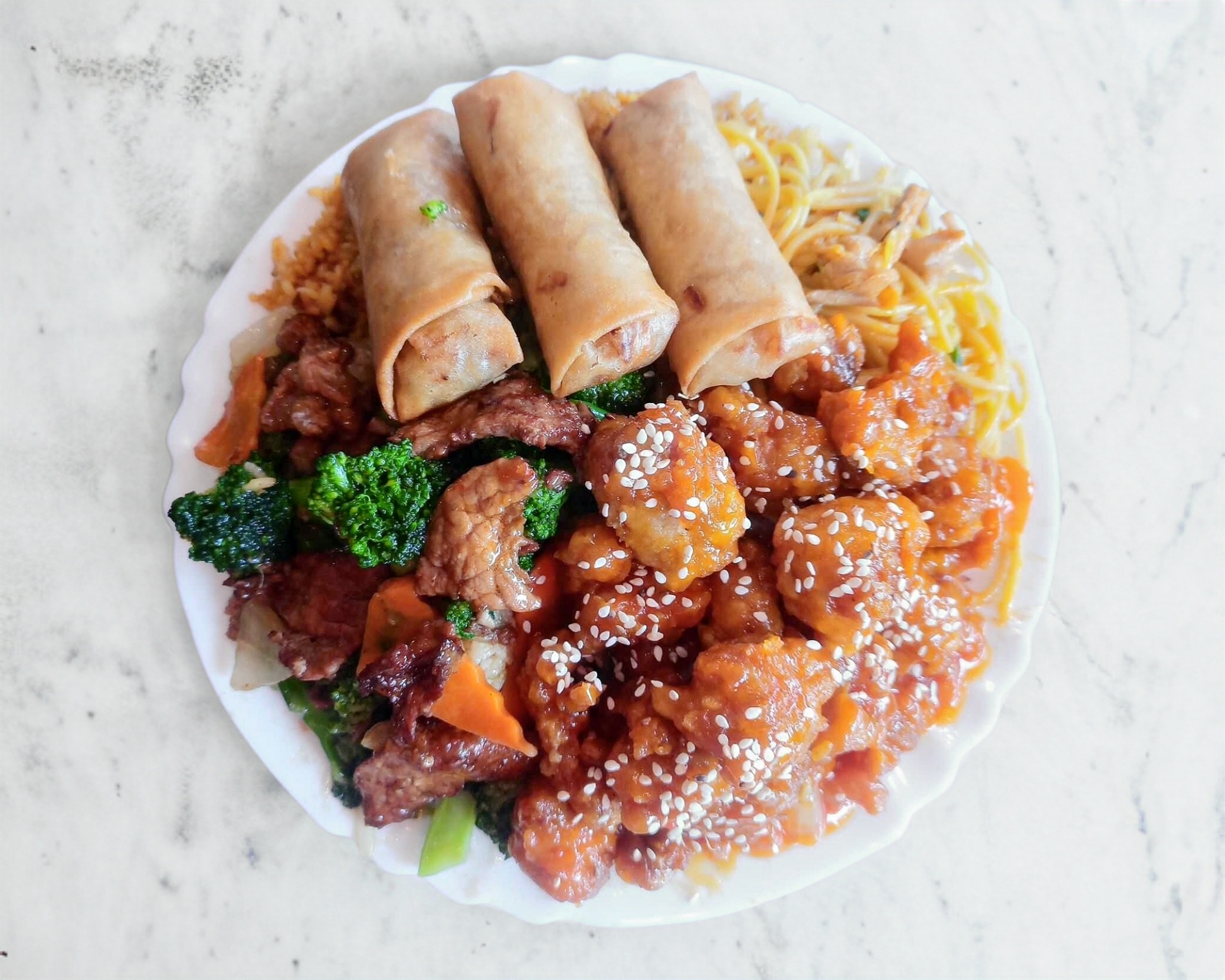 Guarnición, Bistec Picante, un Rollo Primavera y Refresco