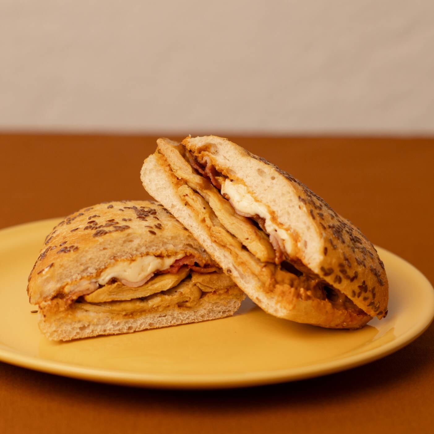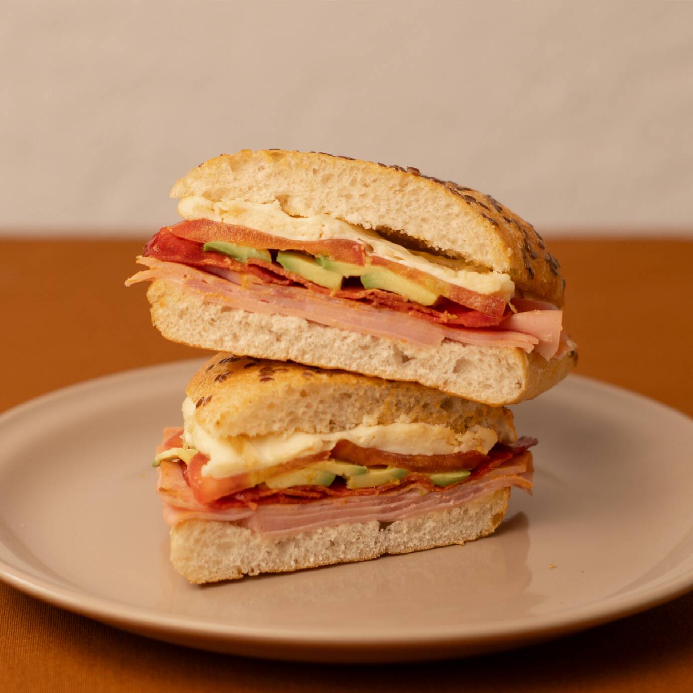 Jamón, queso panela, tocino, guacamole y mayonesa chipotle.