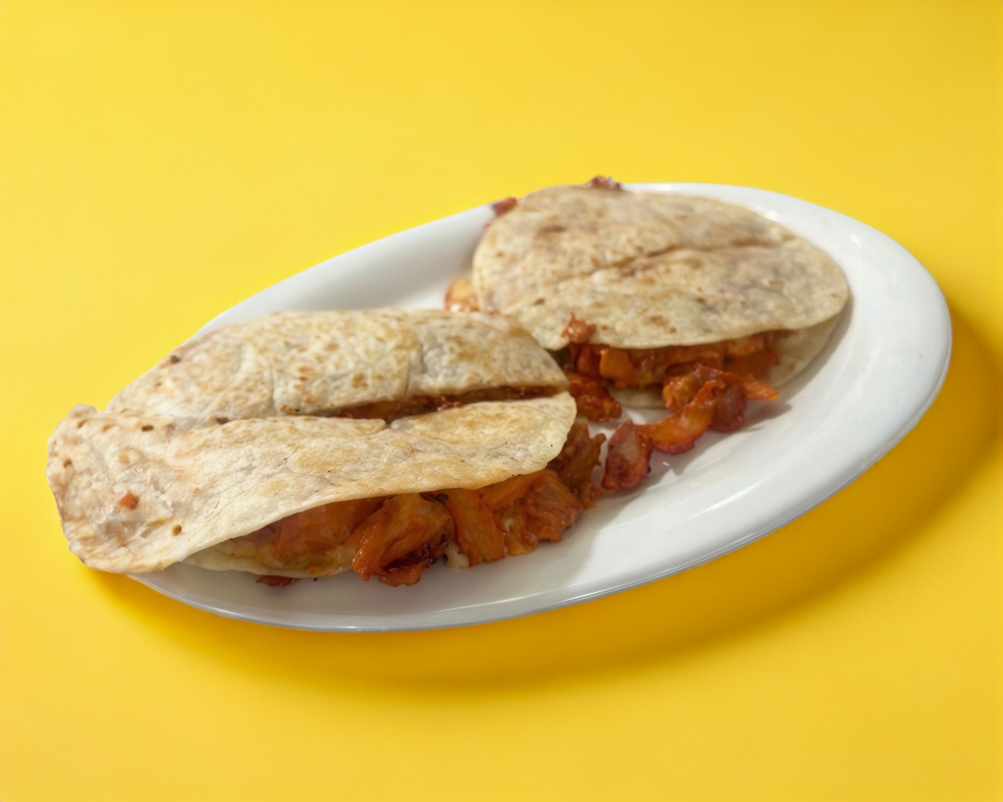 Orden de 2 gringas de Pastor, en tortilla de harina y queso fundido.