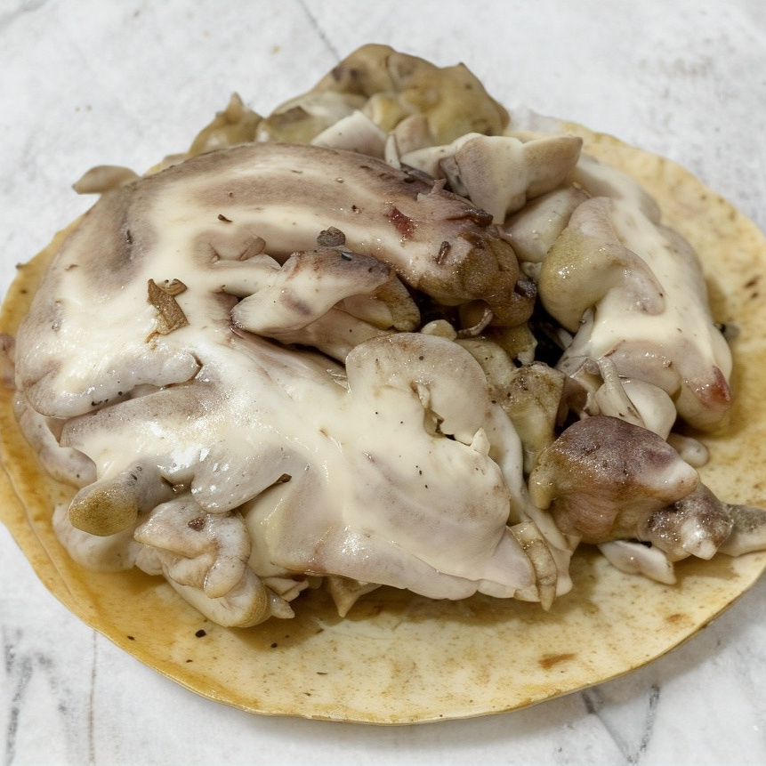 Incluye carne de Costilla, Queso, Chile Morrón, Cebolla, Tocino, Queso, Tortilla de Maíz, Aproximadamente 650 gramos