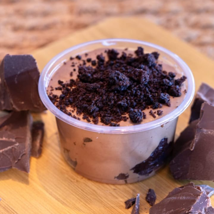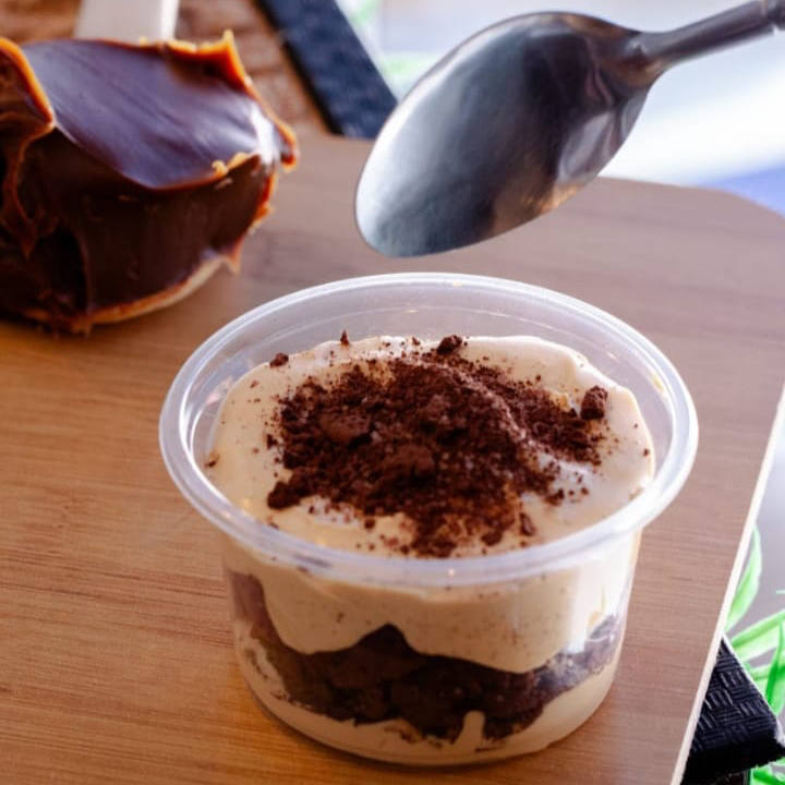 Típico postre Argento, a base de dulce de leche, queso crema y galletas de cacao organico