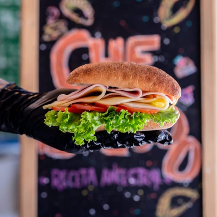 Mayonesa casera, lechuga, jitomate, jamón de piern premium, queso manchego y queso mozzarella