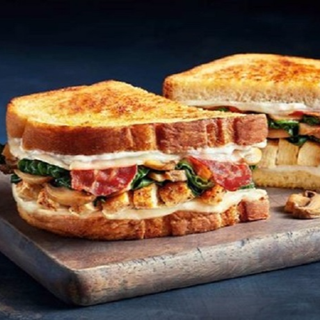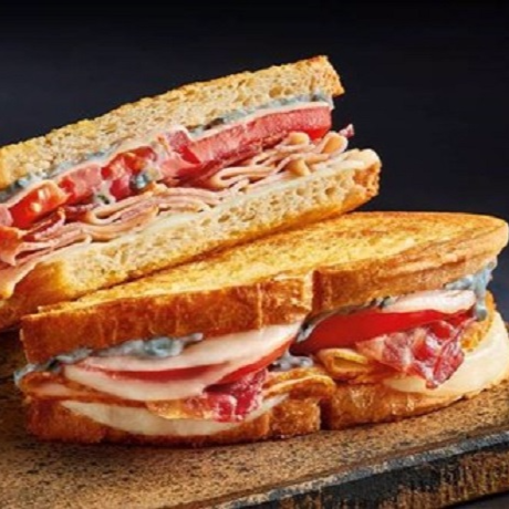 Pollo, pepperoni, queso manchego, tocino y queso amarillo, lechuga, mayonesa chipotle en pan oroweat