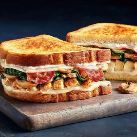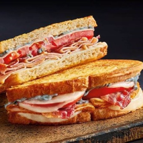 Pollo, pepperoni, queso manchego, tocino y queso amarillo, lechuga, mayonesa chipotle en pan oroweat