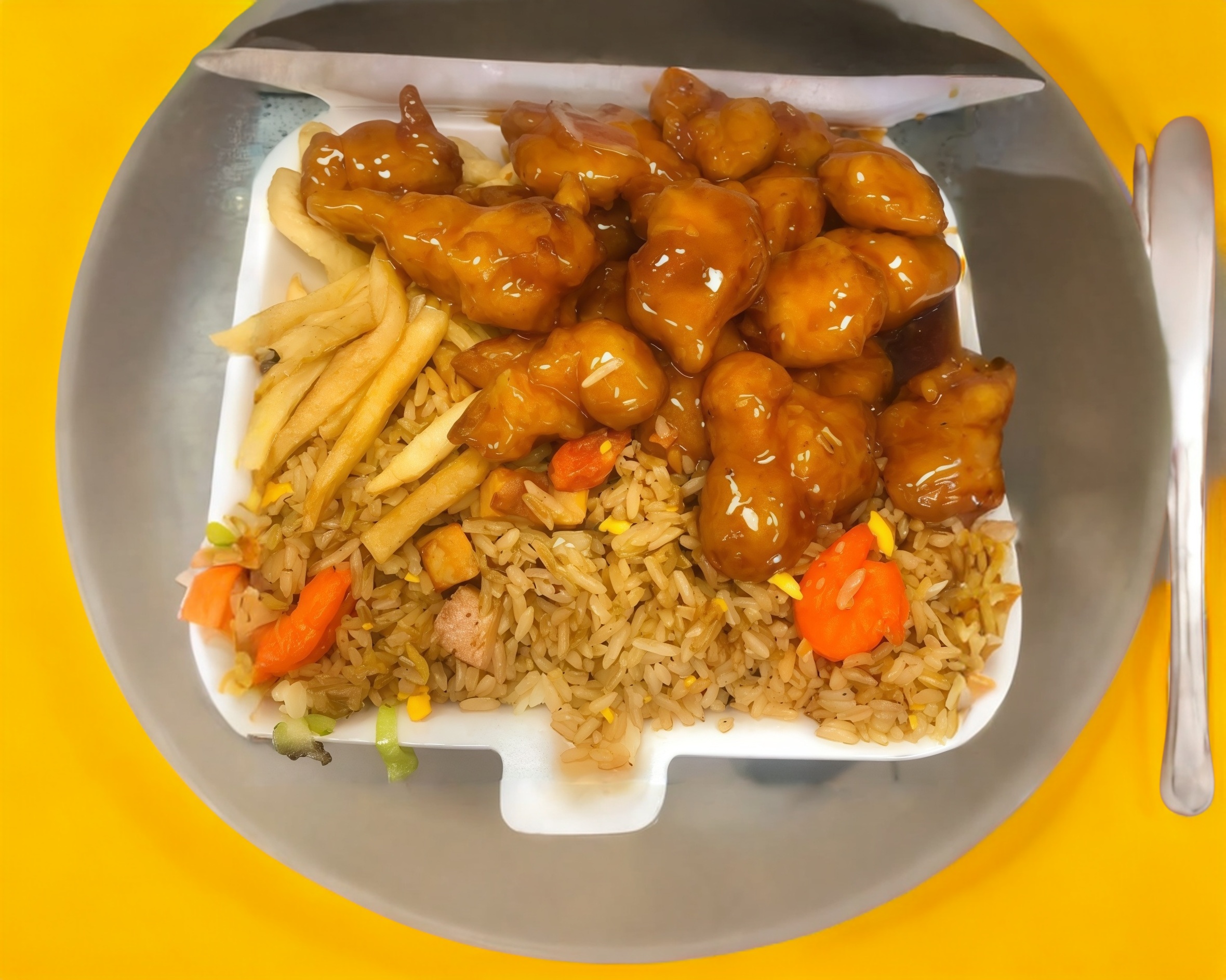 COMBO ARROZ FRITO CON POLLO A LA NARANJA y Rollo