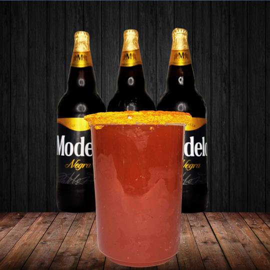 Vaso escarchado, agregamos limón, sal, maggie, salsa inglesa y clamto