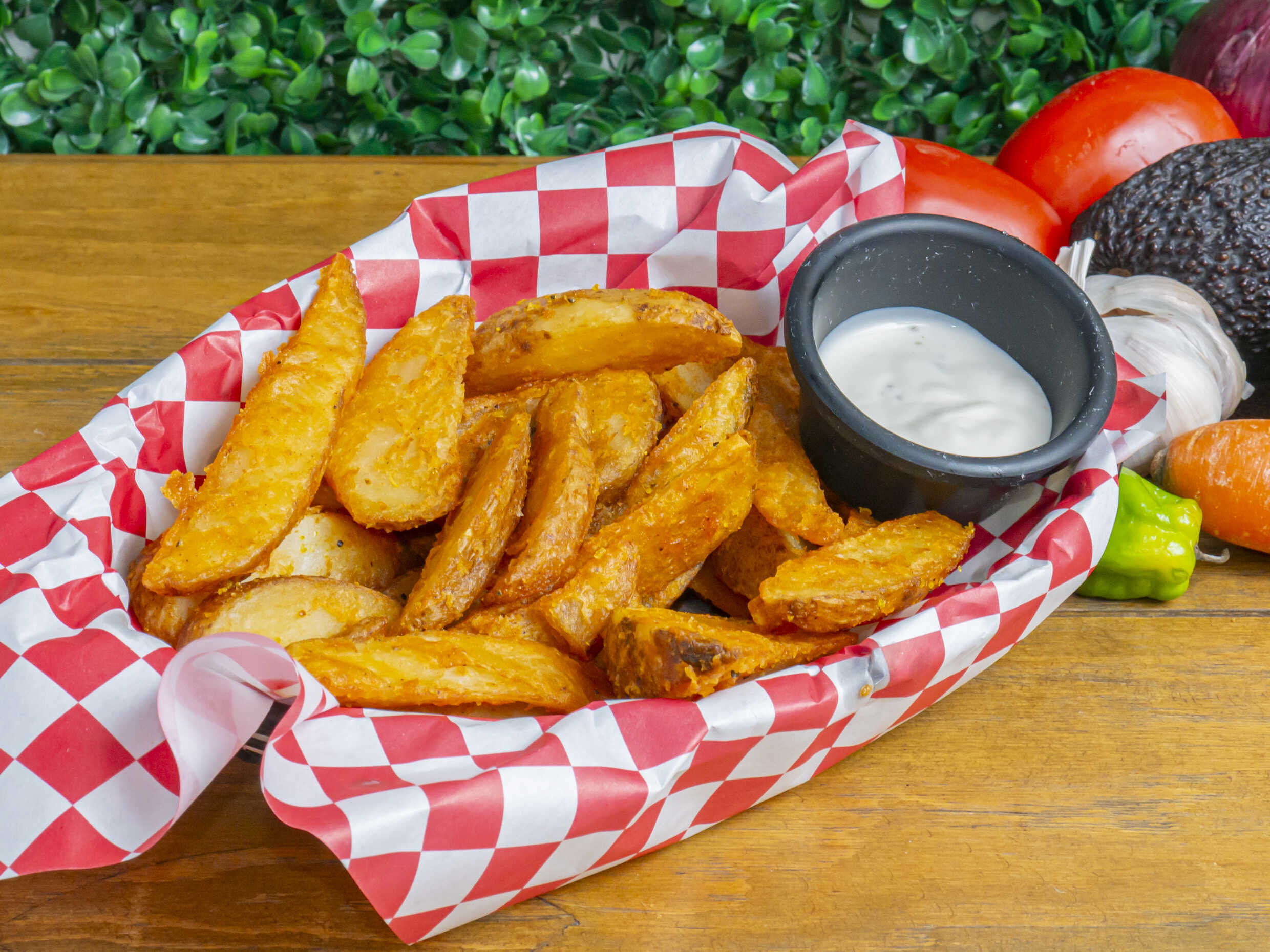 Acompañados con aderezo ranch, zanahoria y pepino.