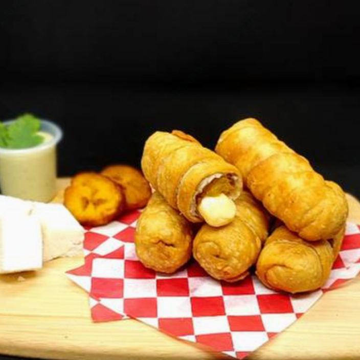 Deditos de queso jamon y platano, hechos con harina de trigo.Orden de 5 piezas.