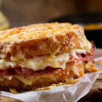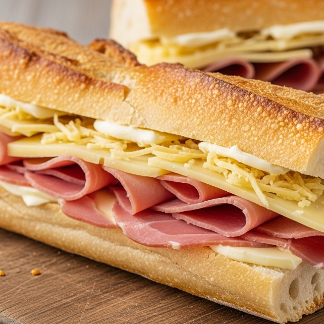 SANDWICH TIPICO DE FRANCIA, JAMON CON GRATINADO DE QUESOS FRANCESES